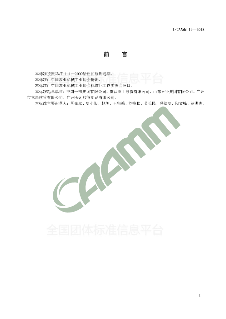 中国一拖集团有限公司、雷沃重工股份有限公司、山东五征集团有限公司、广州市立昂软管有限公司、广州天河胶管制品有限公司