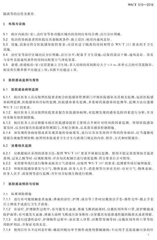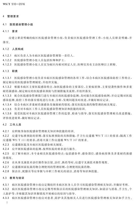 WS/T 510-2016 病区医院感染管理规范