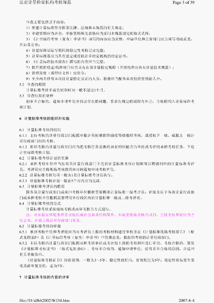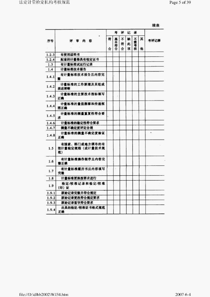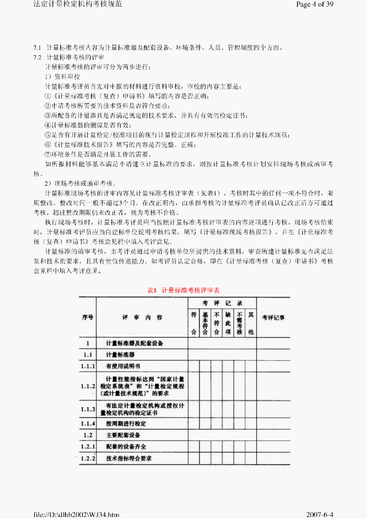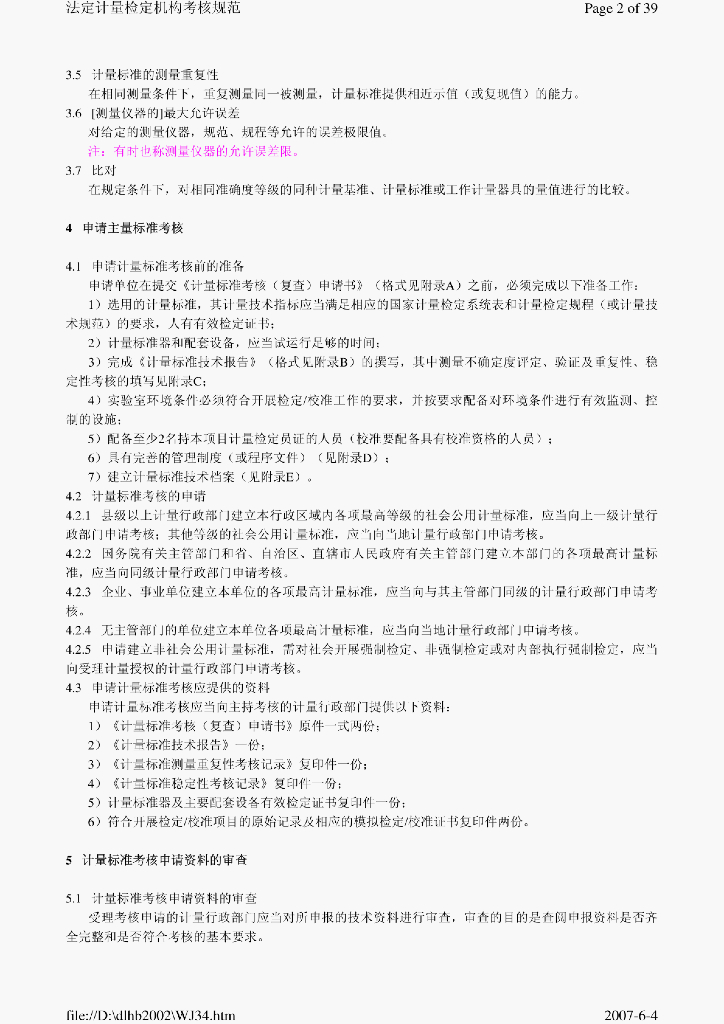JJG 1033-2001 计量标准与考核规范