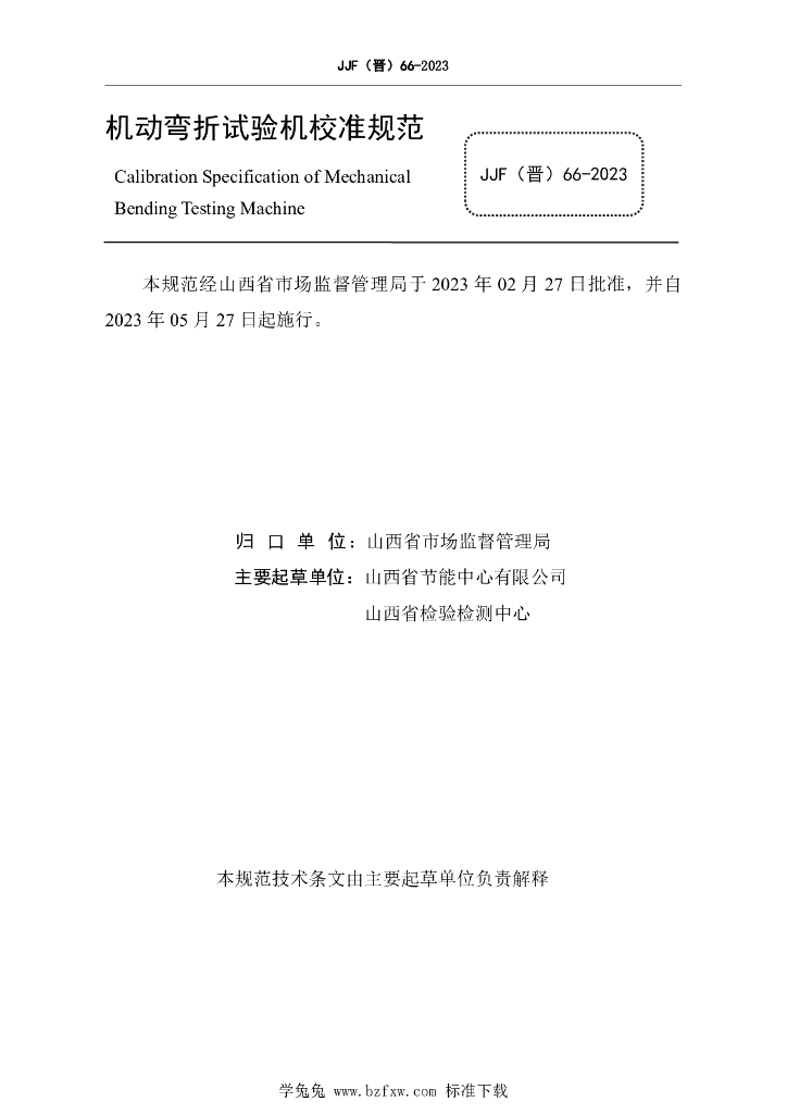 JJF(晋)66-2023 机动弯折试验机校准规范