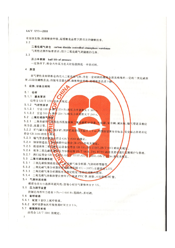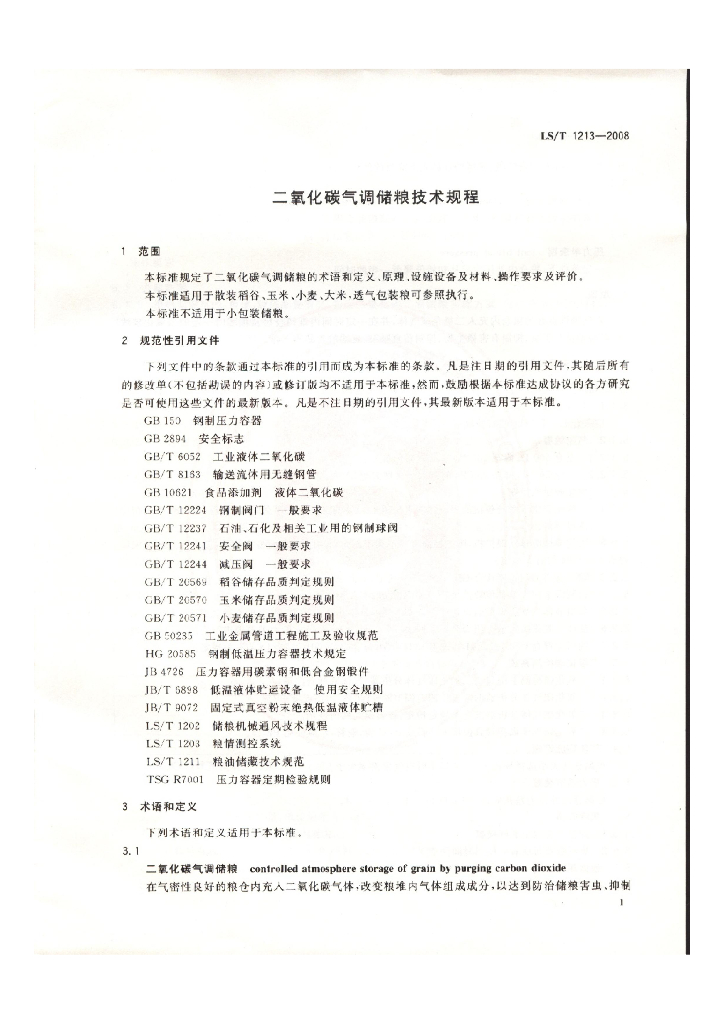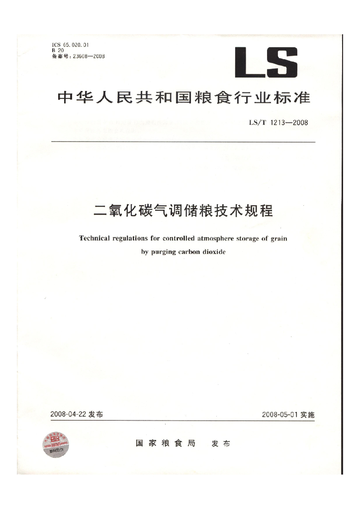 LS/T 1213-2008 二氧化碳气调储粮技术规程