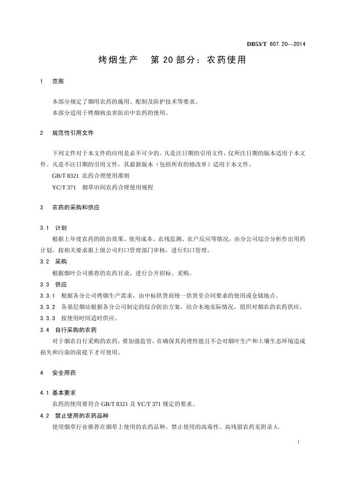 DB53/T 607.20-2014 烤烟生产 第20部分:农药使用
