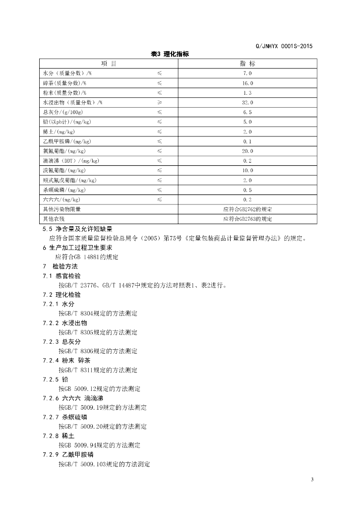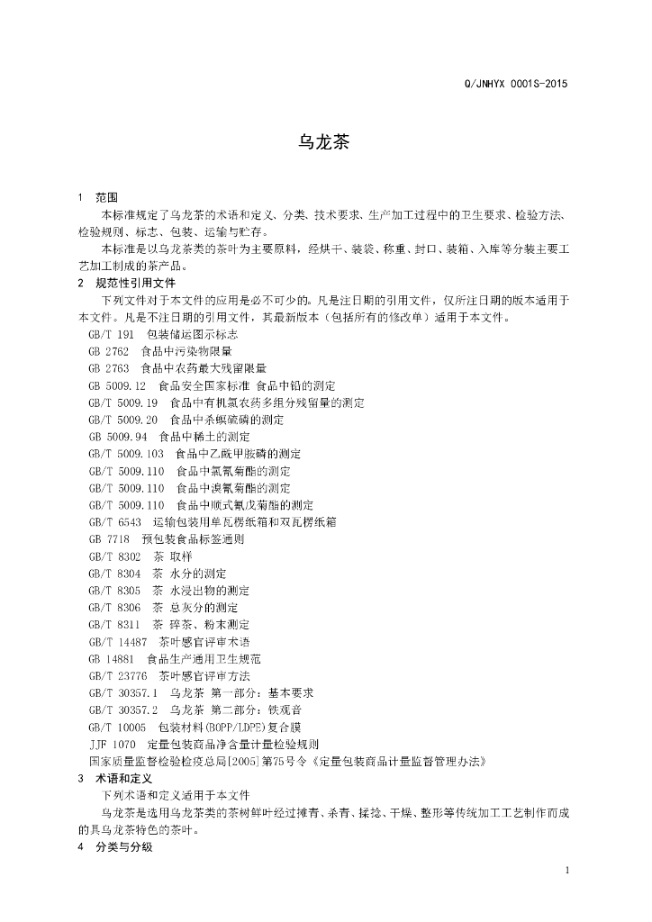 Q/JNHYX 0001S-2015 济南华源祥生物科技发展有限公司 乌龙茶