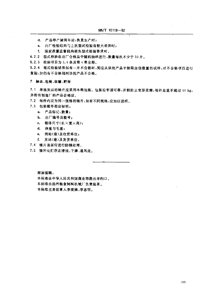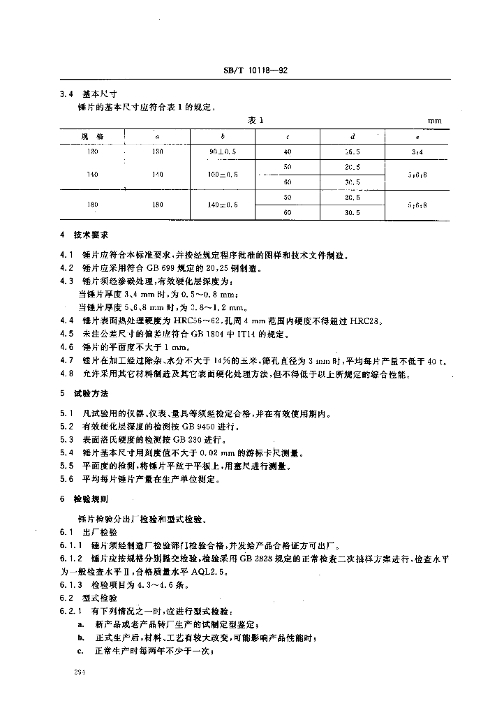 SB/T 10118-1992 锤片粉碎机 锤片(LS/T 3605-1992)