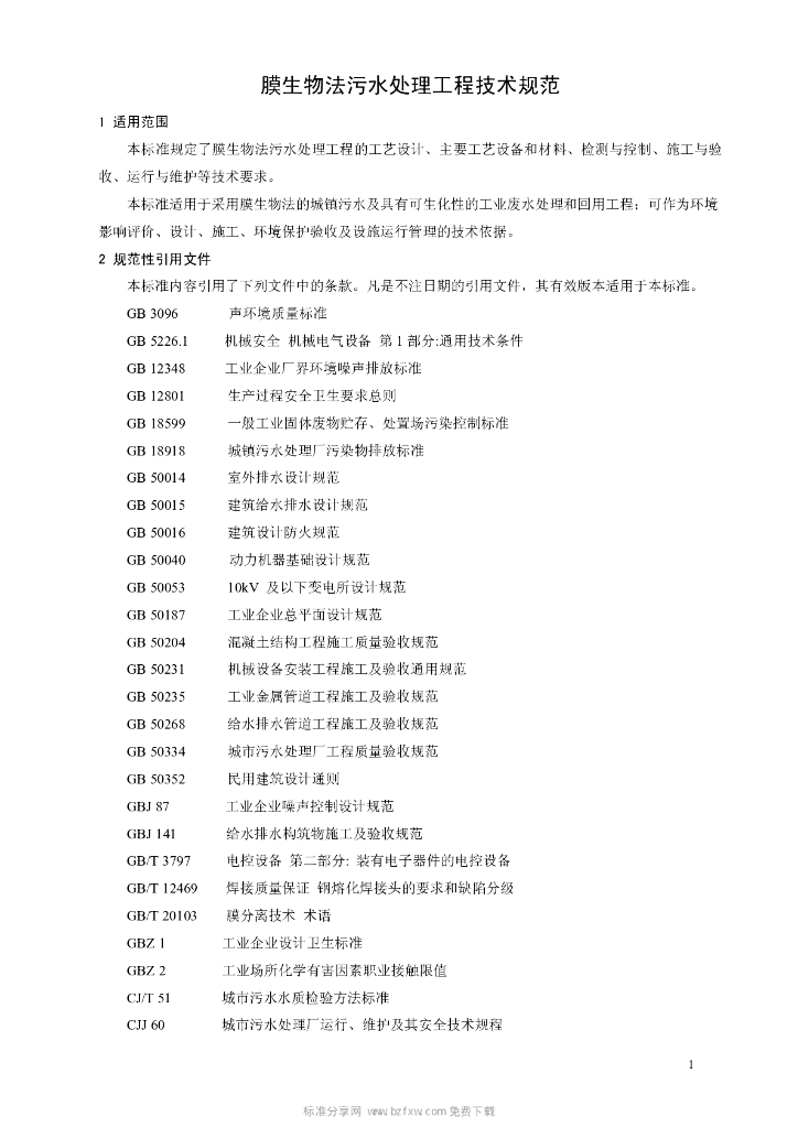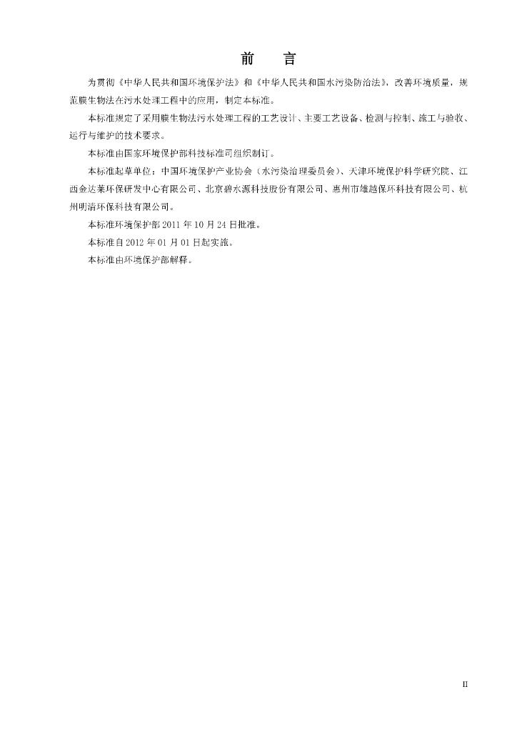 HJ 2010-2011 膜生物法污水处理工程技术规范