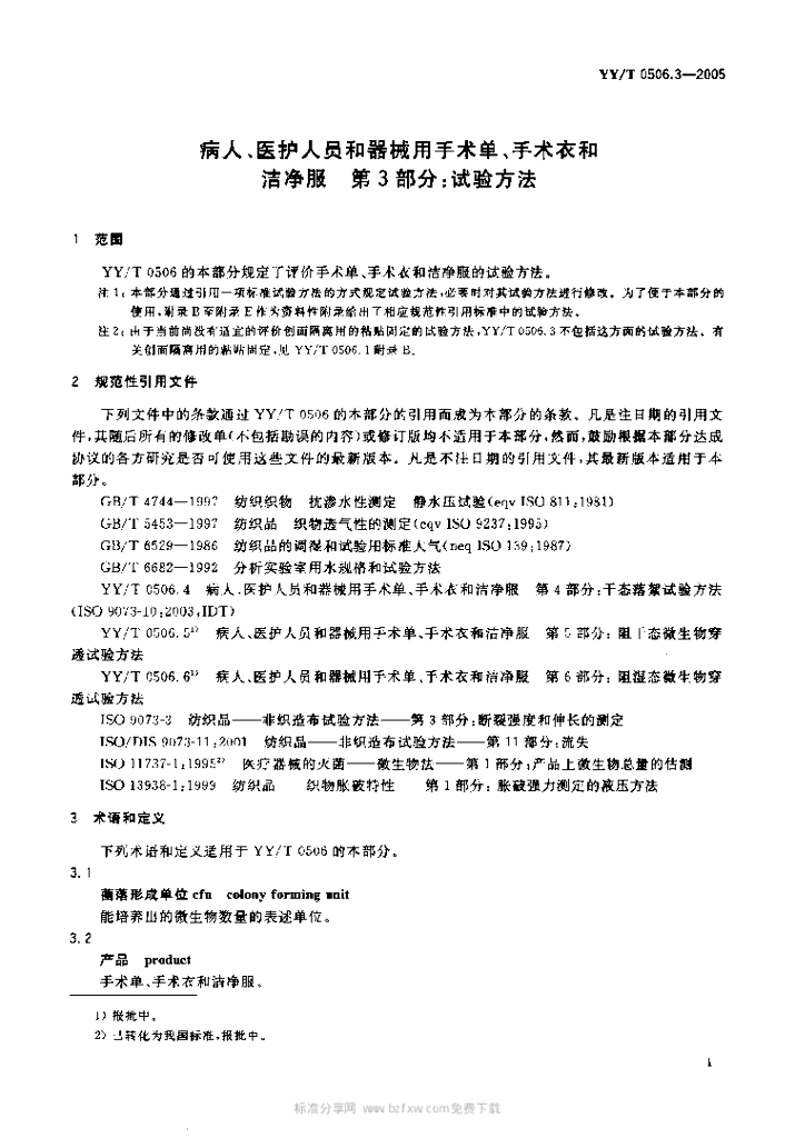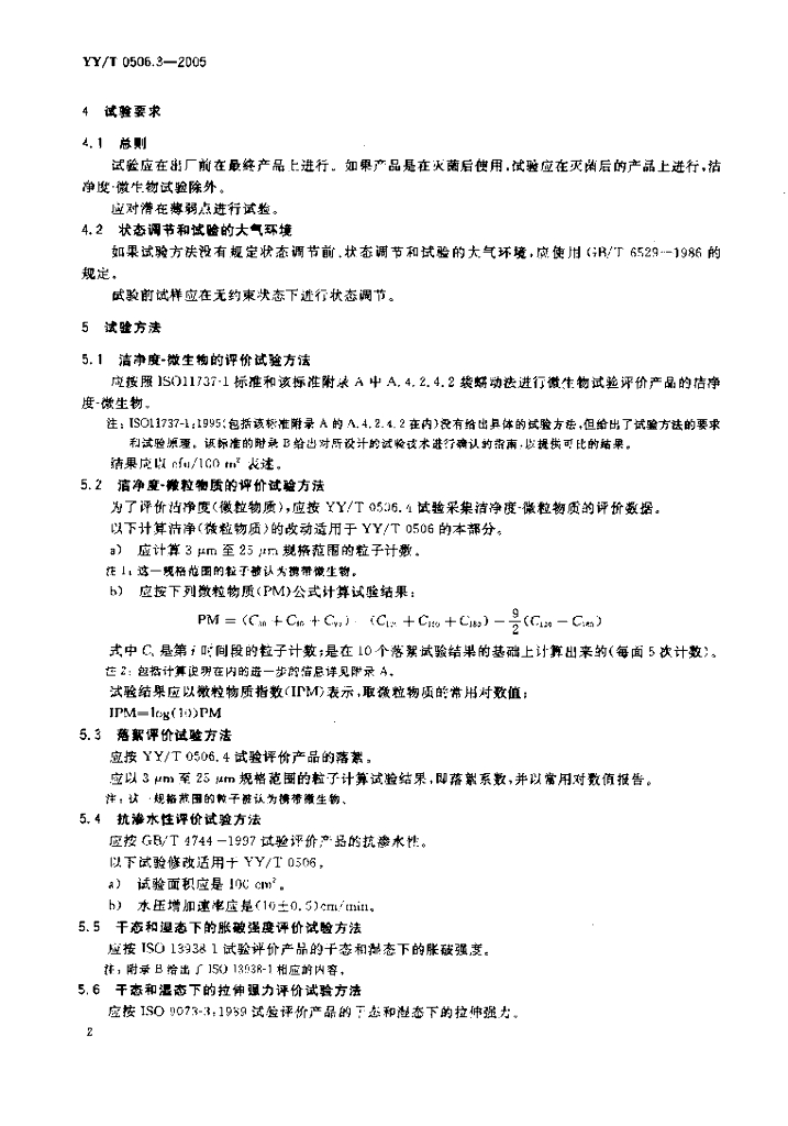 YY/T 0506.3-2005 病人、医护人员和器械用手术单、手术衣和洁净服 第3部分:试验方法