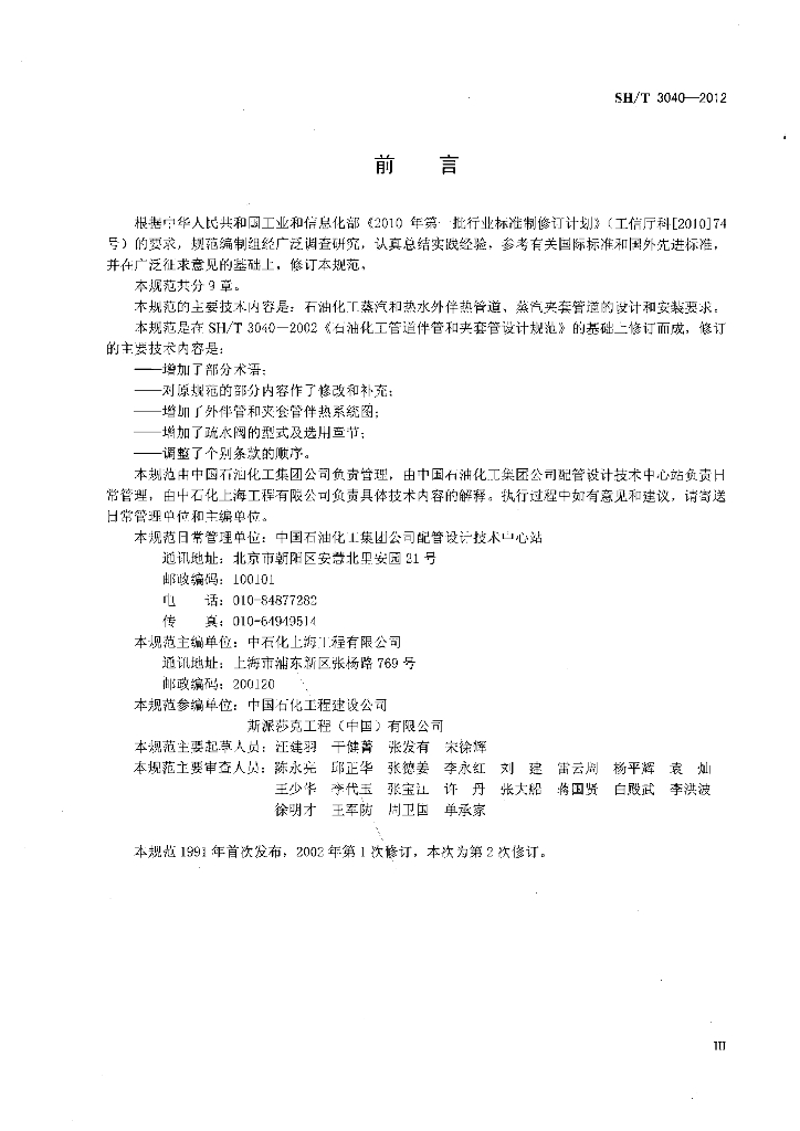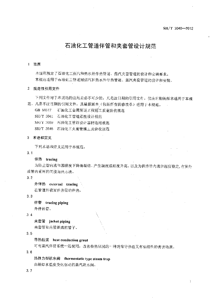 SH/T 3040-2012 石油化工管道伴管及夹套管设计规范