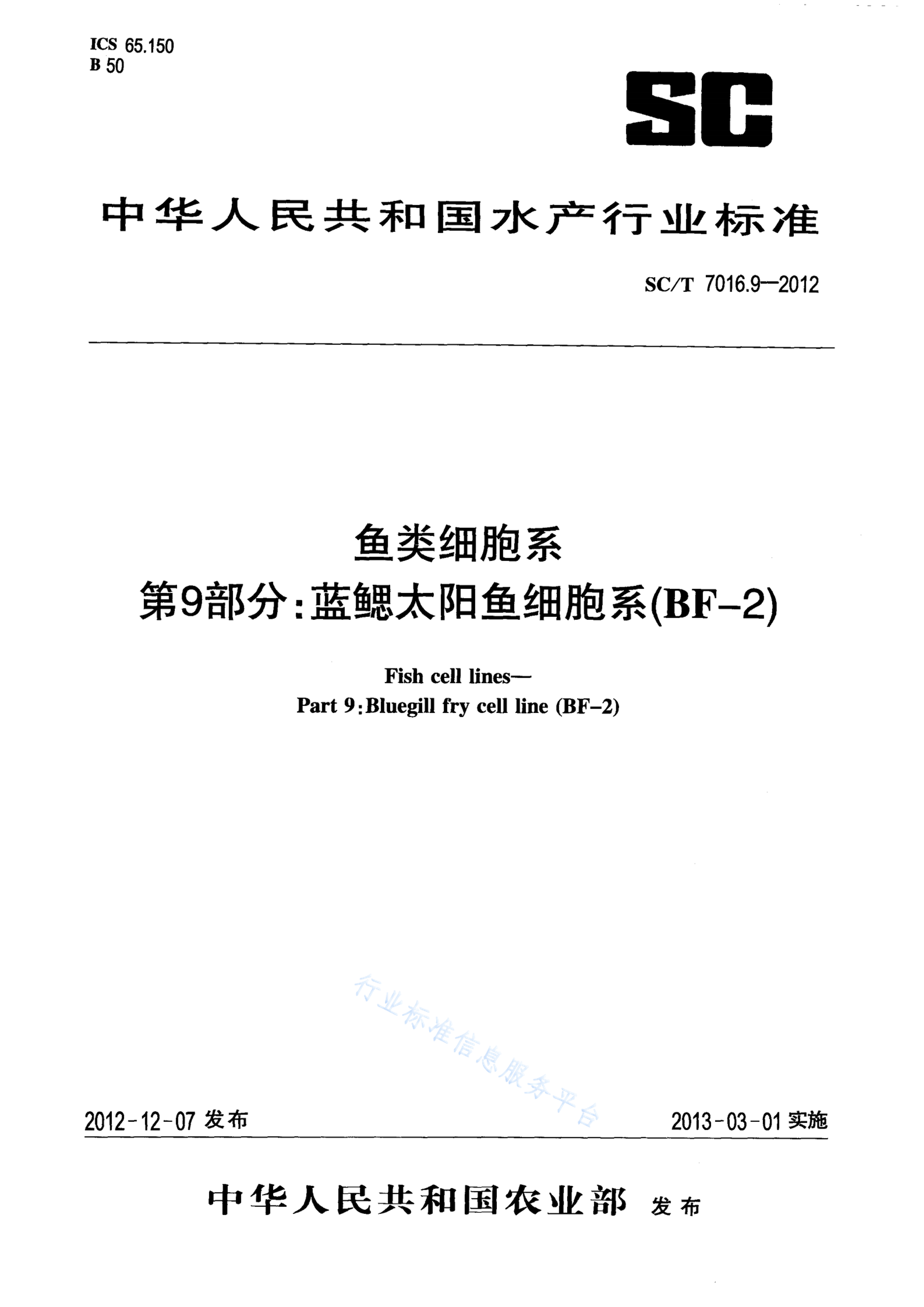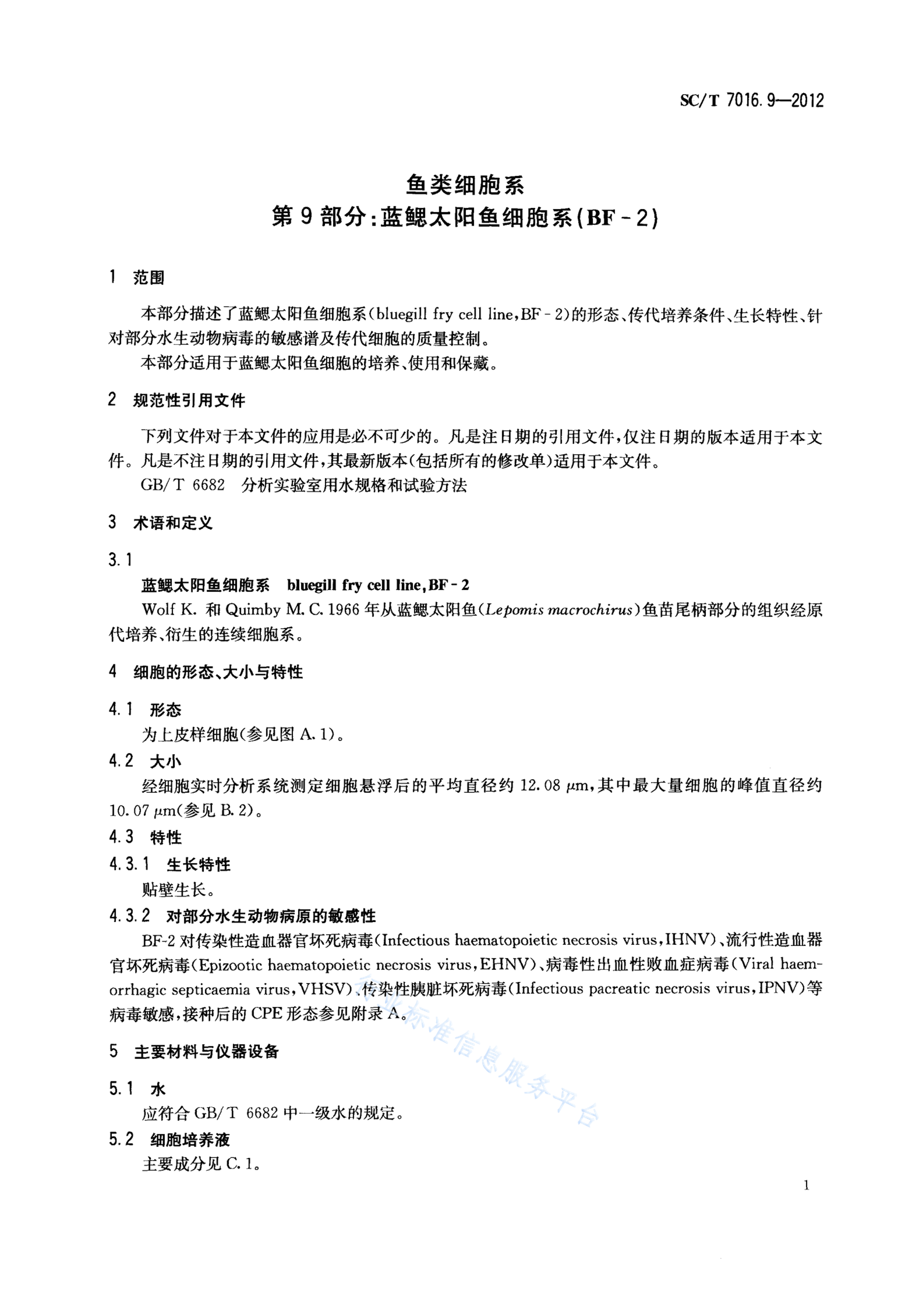 SC/T 7016.9-2012 鱼类细胞系 第9部分:蓝鳃太阳鱼细胞系(BF-2)