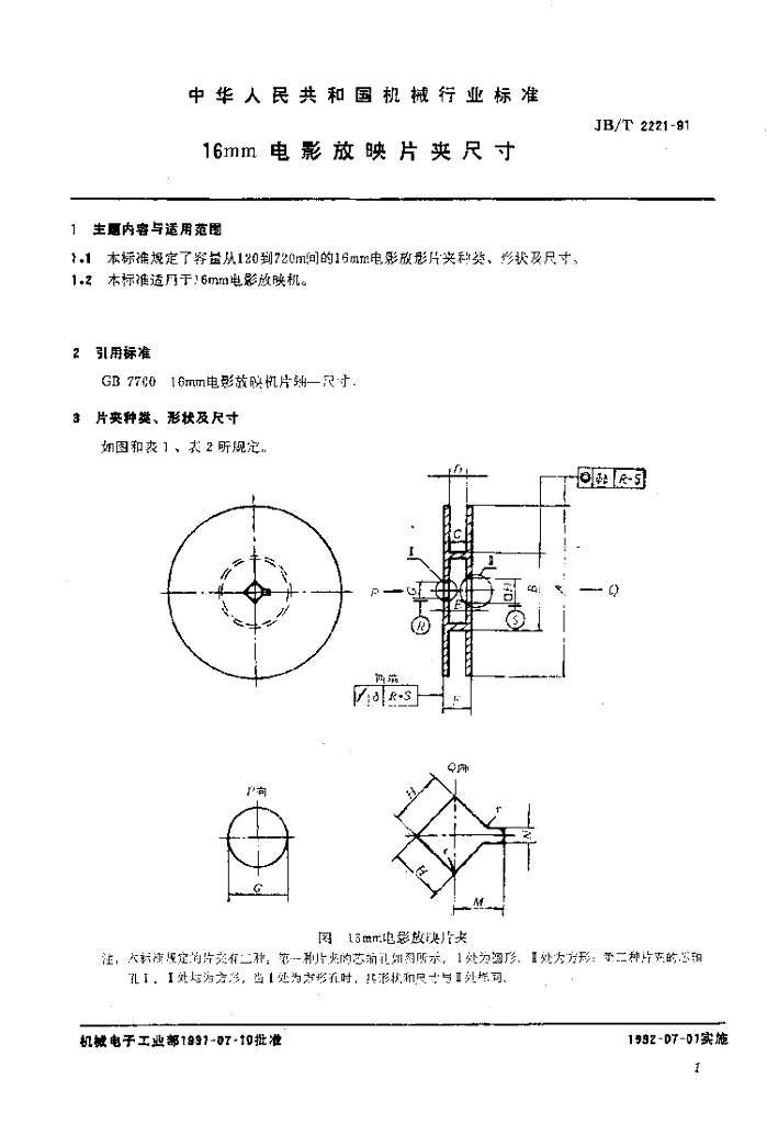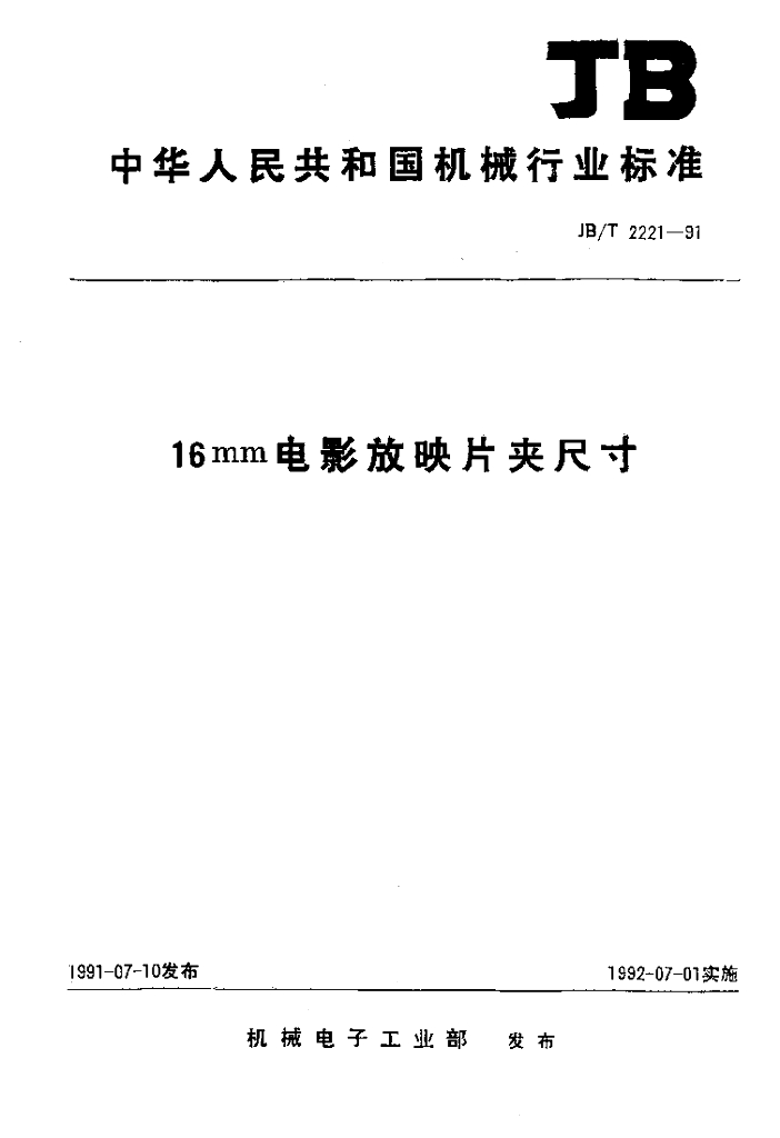 JB/T 2221-1991 16mm电影放映片夹尺寸