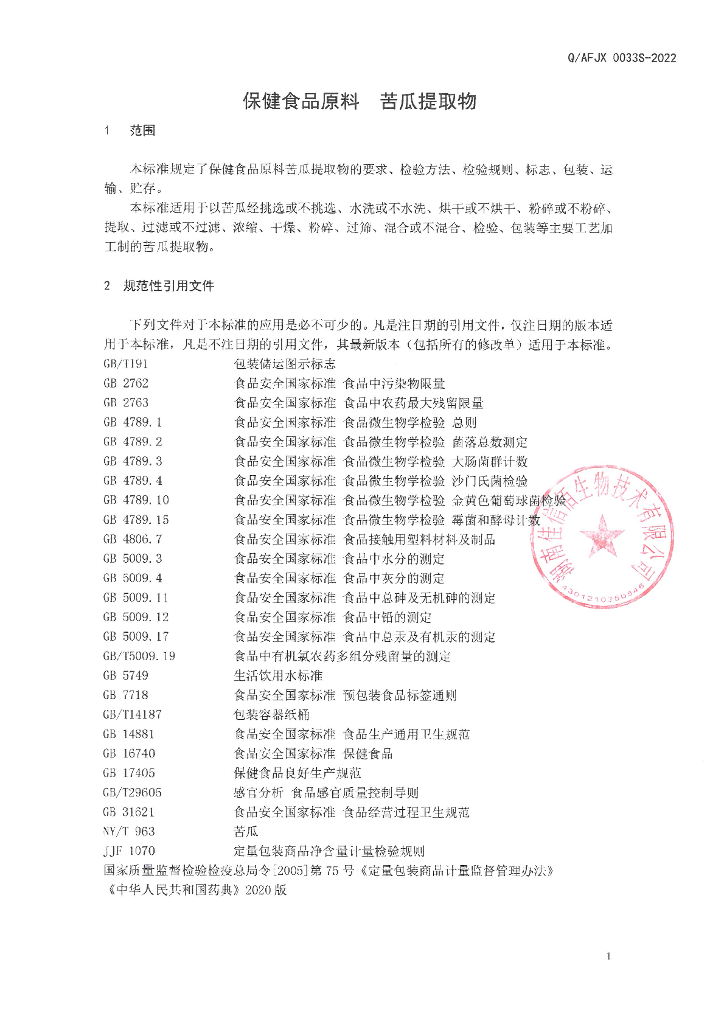 Q/AFJX 0033S-2022 保健食品原料 苦瓜提取物