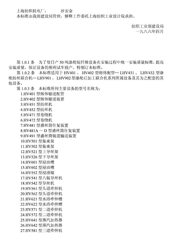 FJJ 216-1986 日产50吨涤纶短纤维设备安装质量检验标准(试行)