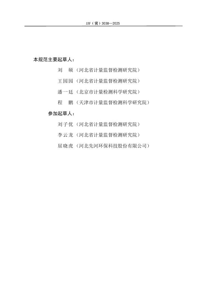 JJF(冀)3038-2025 污染源挥发性有机物(总烃、非甲烷总烃、苯系物)在线监测系统校准规范