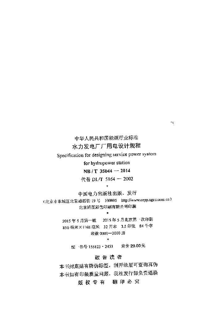 NB/T 35044-2014 水力发电厂厂用电设计规程
