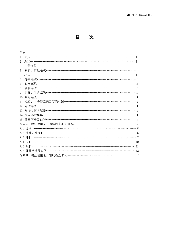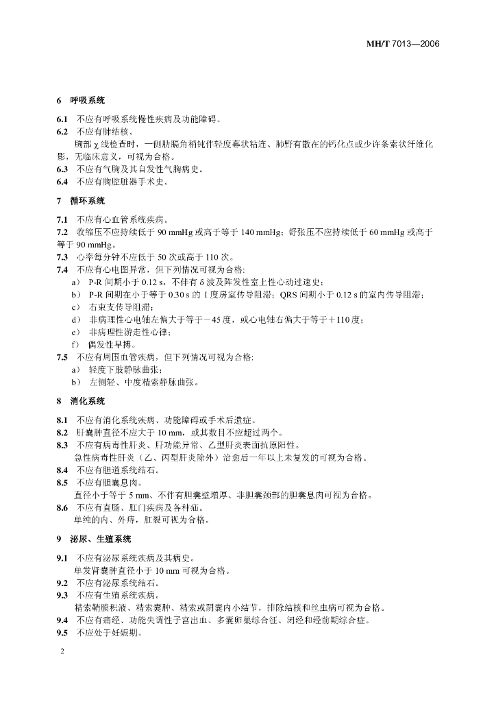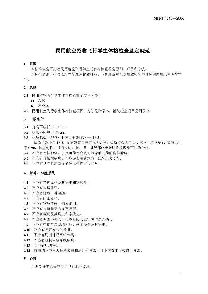 MH/T 7013-2006 民用航空招收飞行学生体格检查鉴定规范