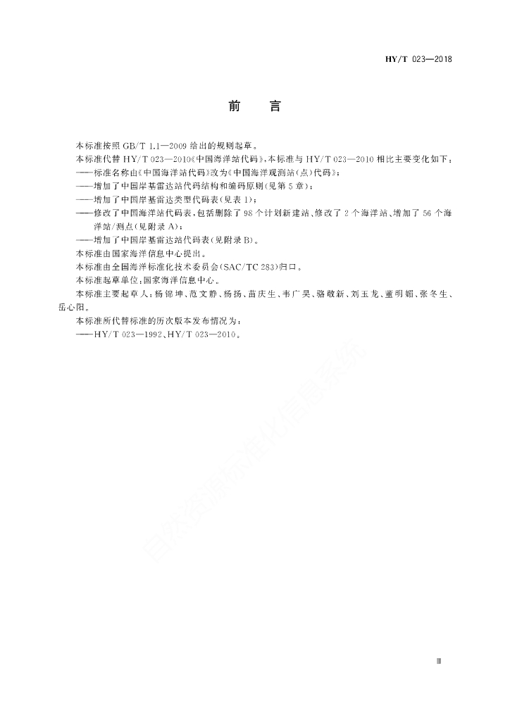 HY/T 023-2018 中国海洋站代码