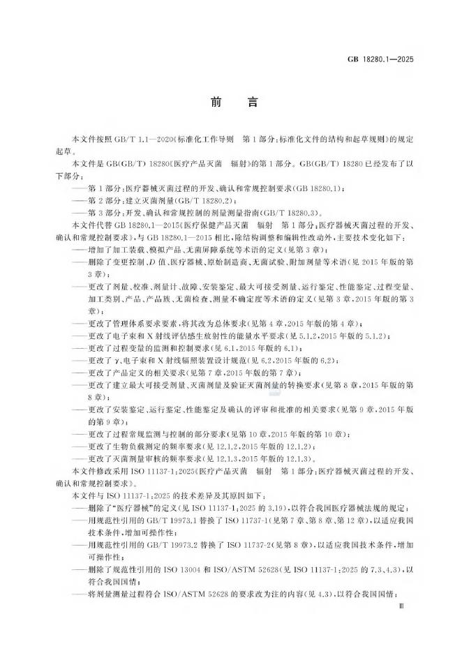 GB 18280.1-2025 医疗产品灭菌 辐射 第1部分:医疗器械灭菌过程的开发、确认和常规控制要求