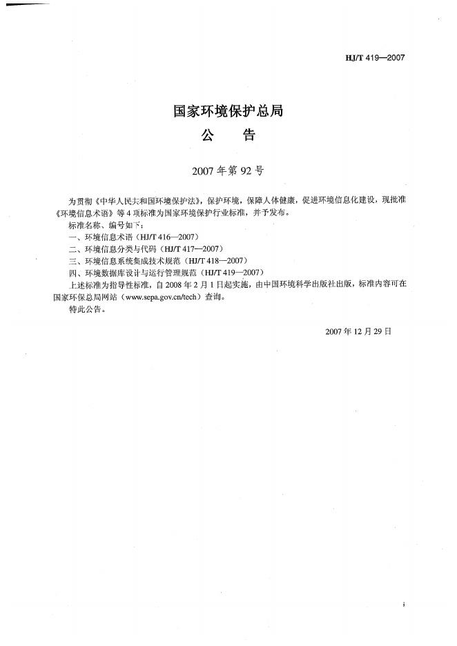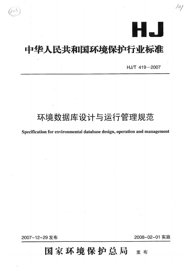 HJ/T 419-2007 环境数据库设计与运行管理规范