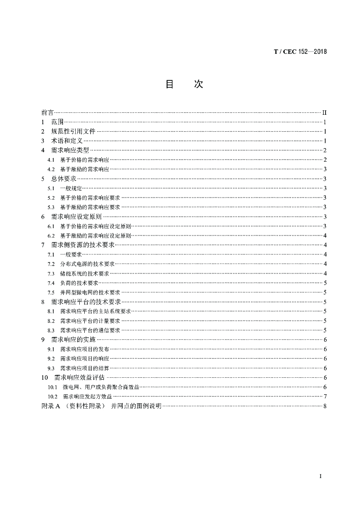 T/CEC 152-2018 并网型微电网需求响应技术要求