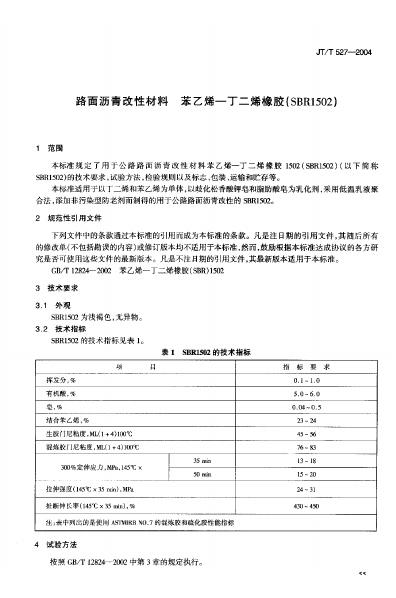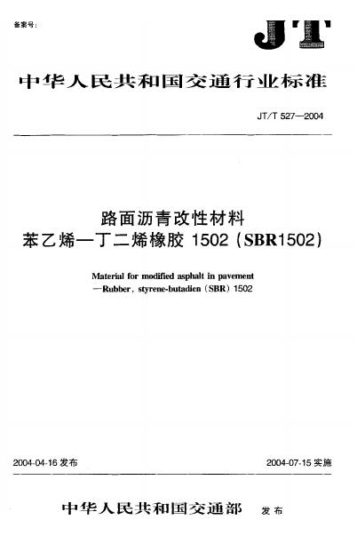 JT/T 527-2004 路面沥青改性材料 苯乙烯-丁二烯橡胶1502(SBR1502)
