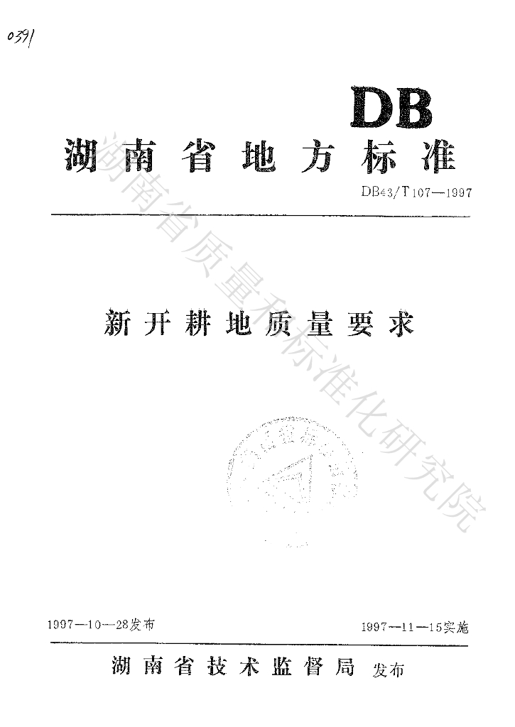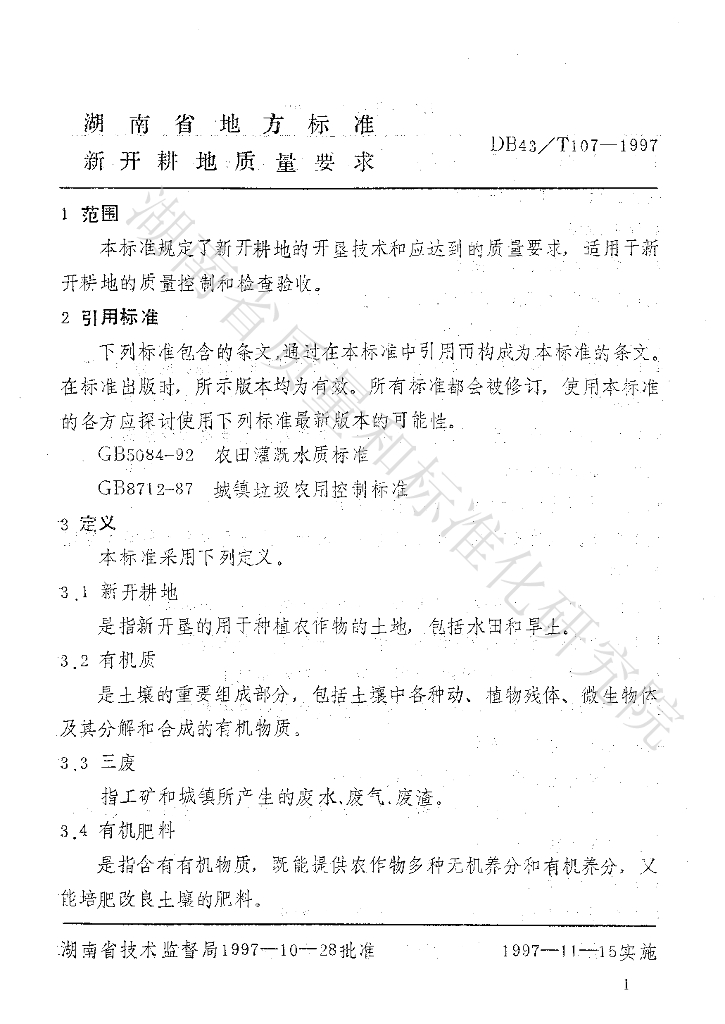 DB43/T 107-1997 新开耕地质量要求