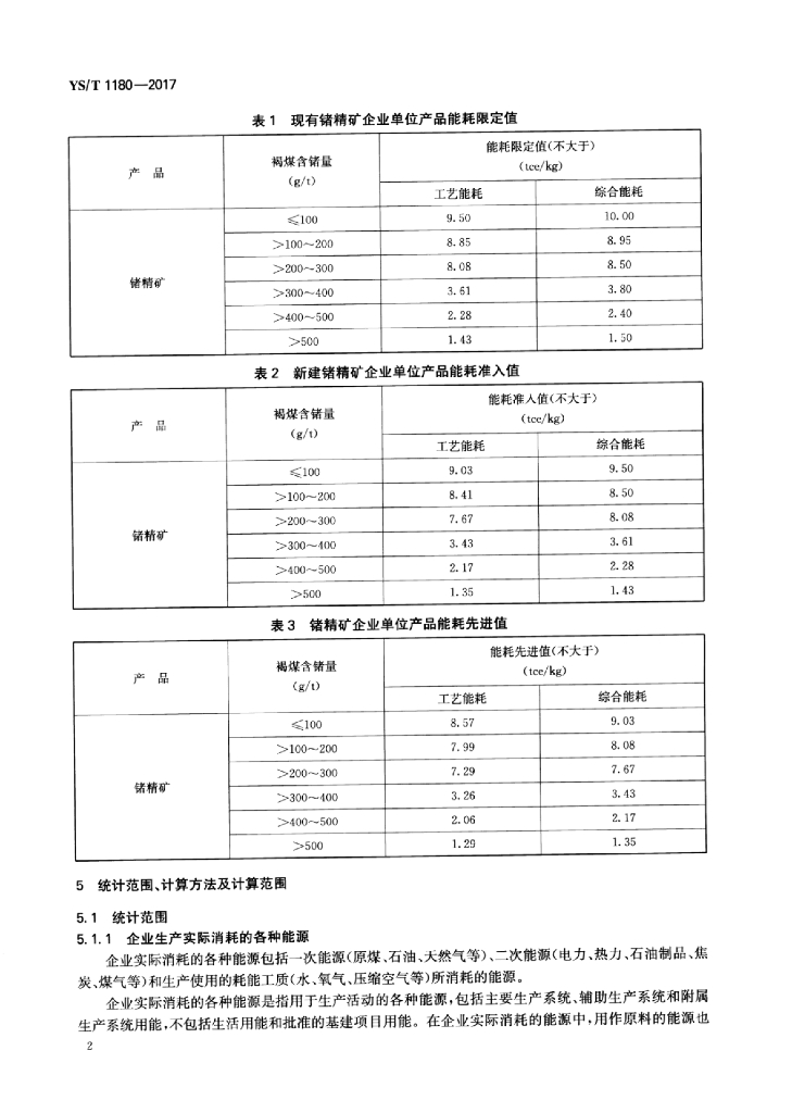 YS/T 1180-2017 锗精矿单位产品能源消耗限额