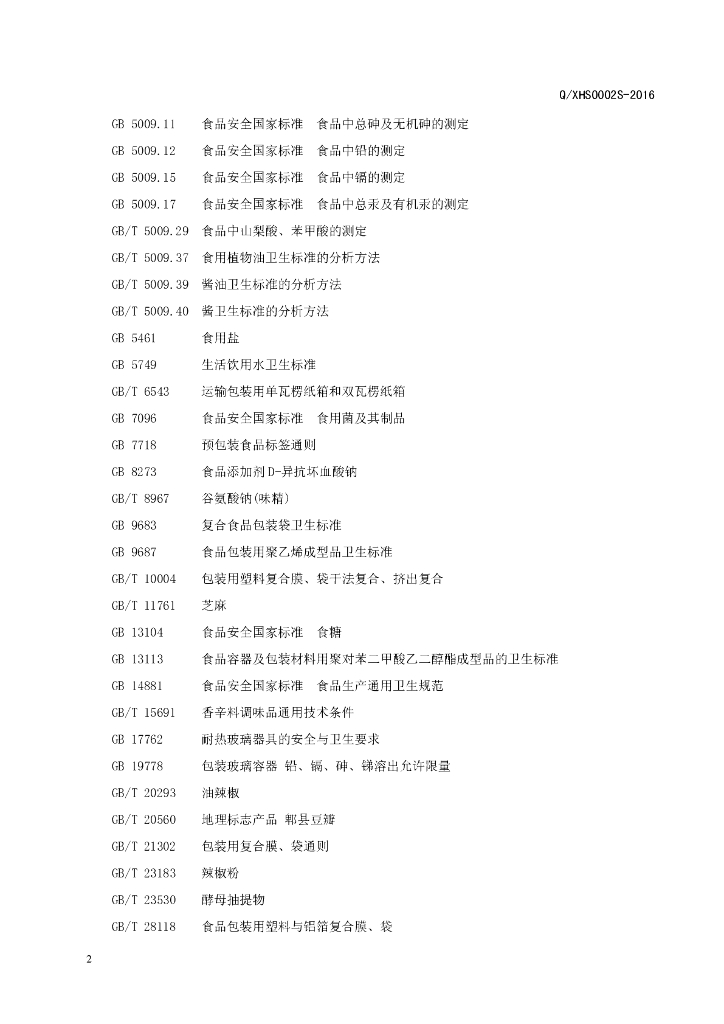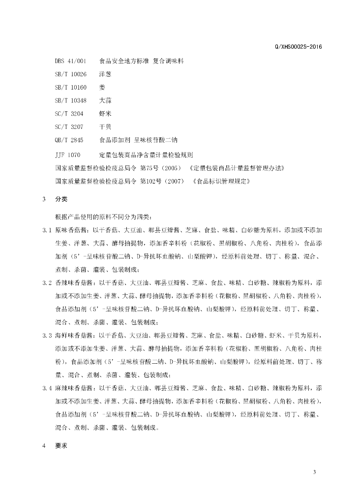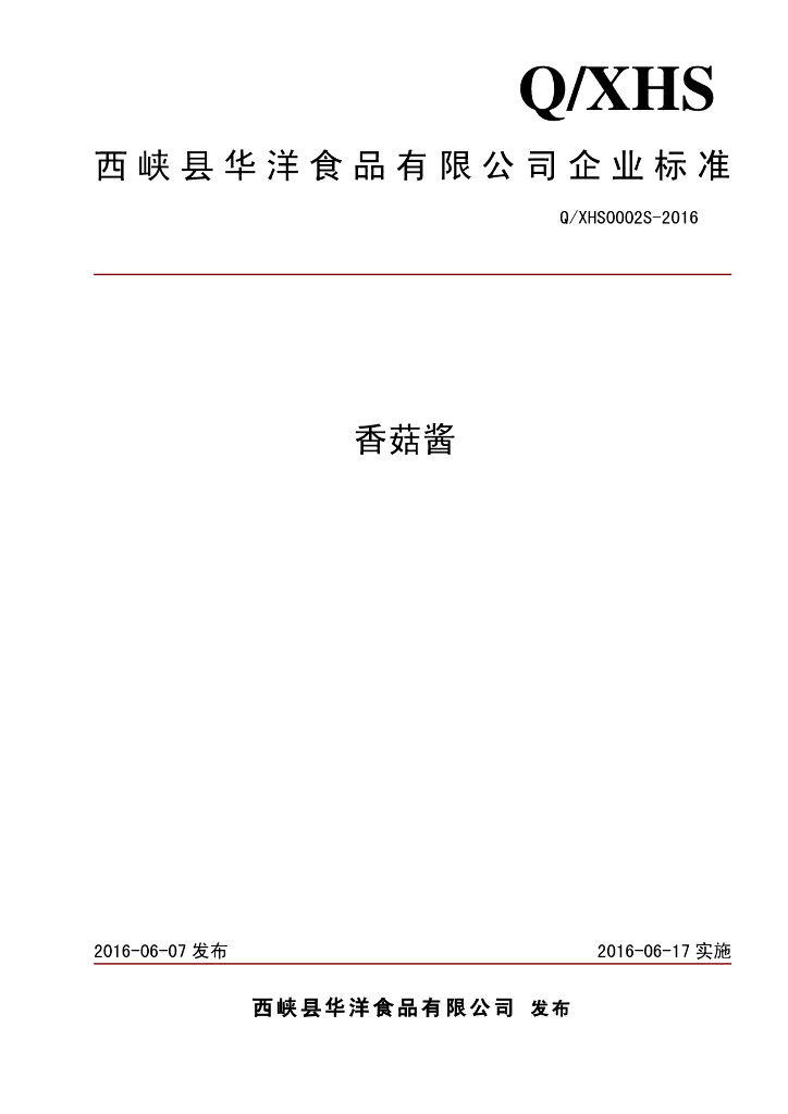 Q/XHS 0002S-2016 西峡县华洋食品有限公司 香菇酱