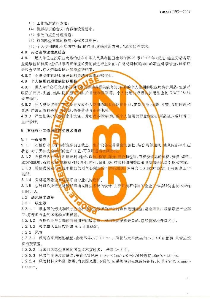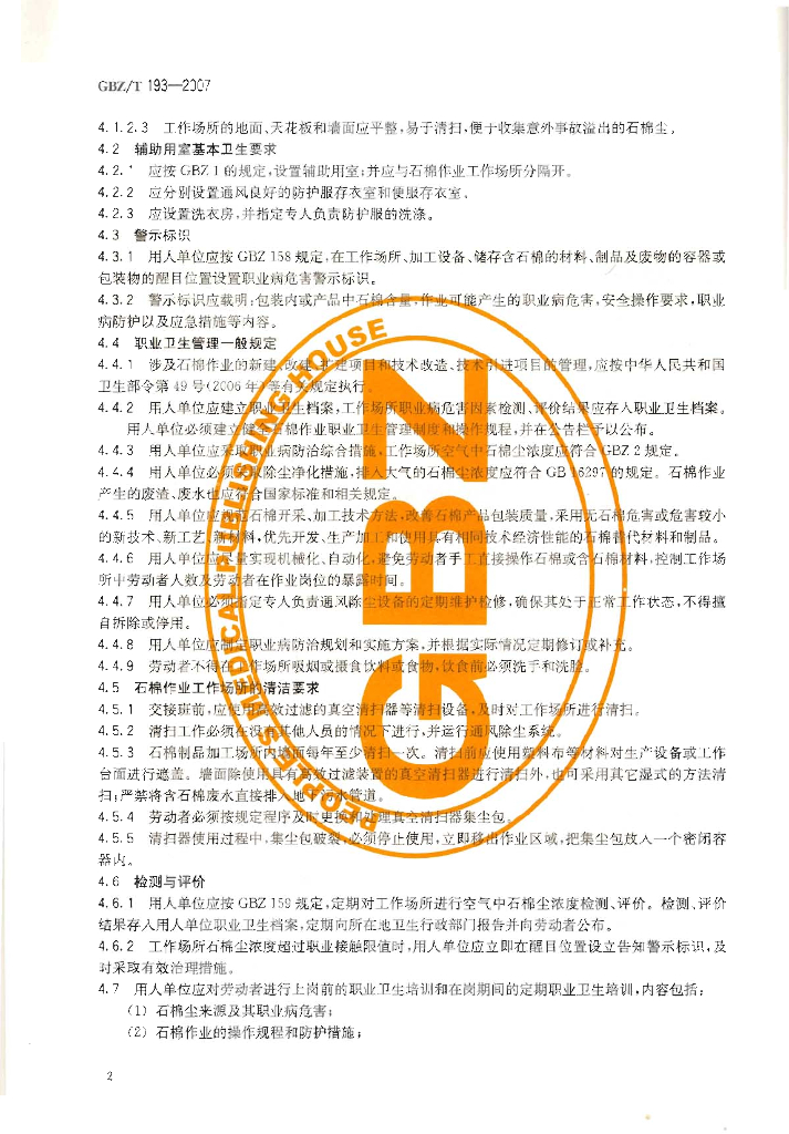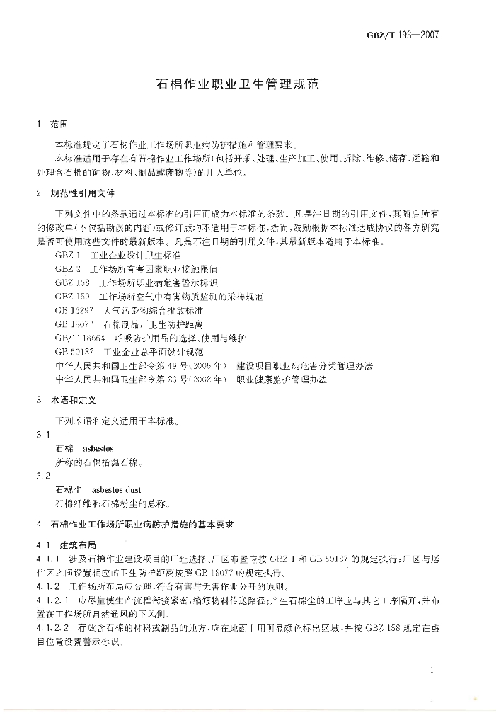 GBZ/T 193-2007 石棉作业职业卫生管理规范