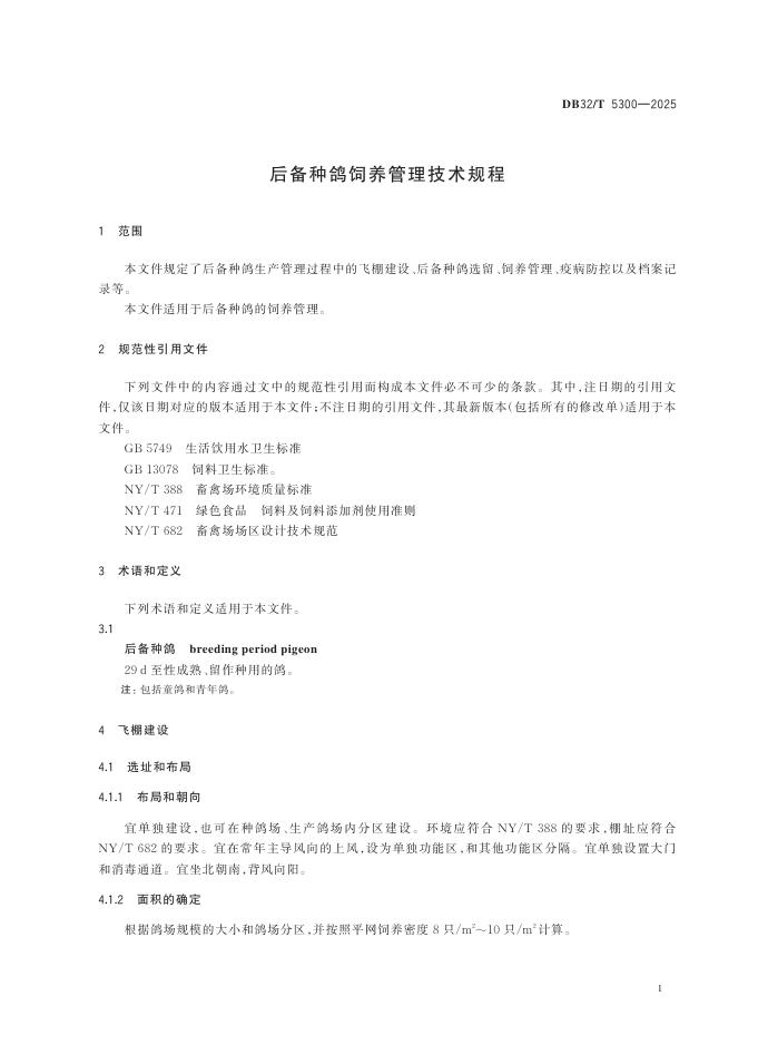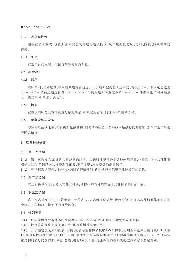 DB32/T 5300-2025 后备种鸽饲养管理技术规程