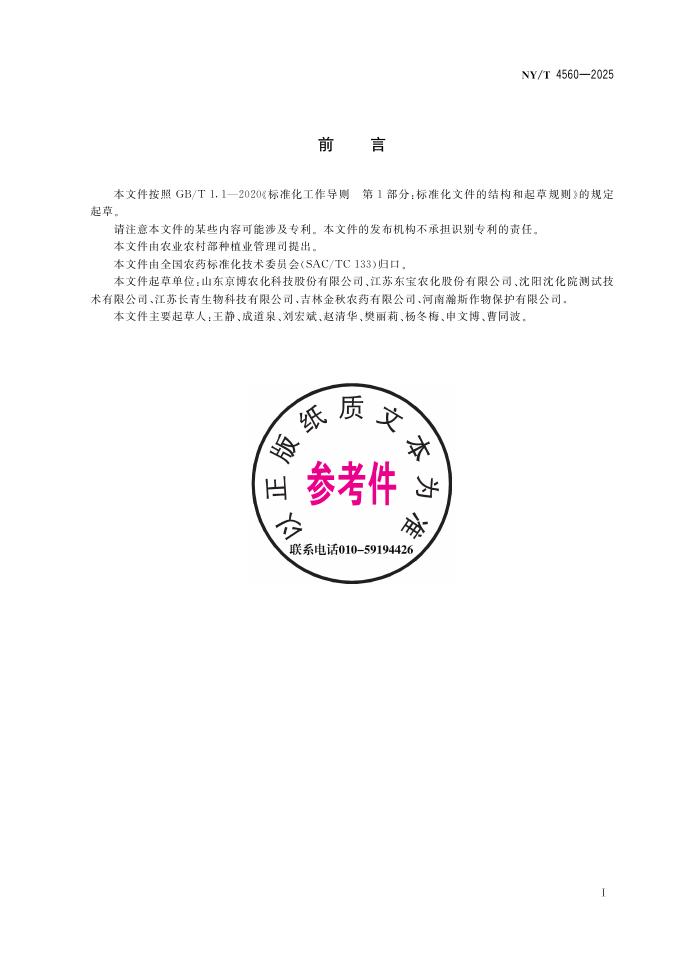 山东京博农化科技股份有限公司、江苏东宝农化股份有限公司、沈阳沈化院测试技术有限公司、江苏长青生物科技有限公司、吉林金秋农药有限公司、河南瀚斯作物保护有限公司。