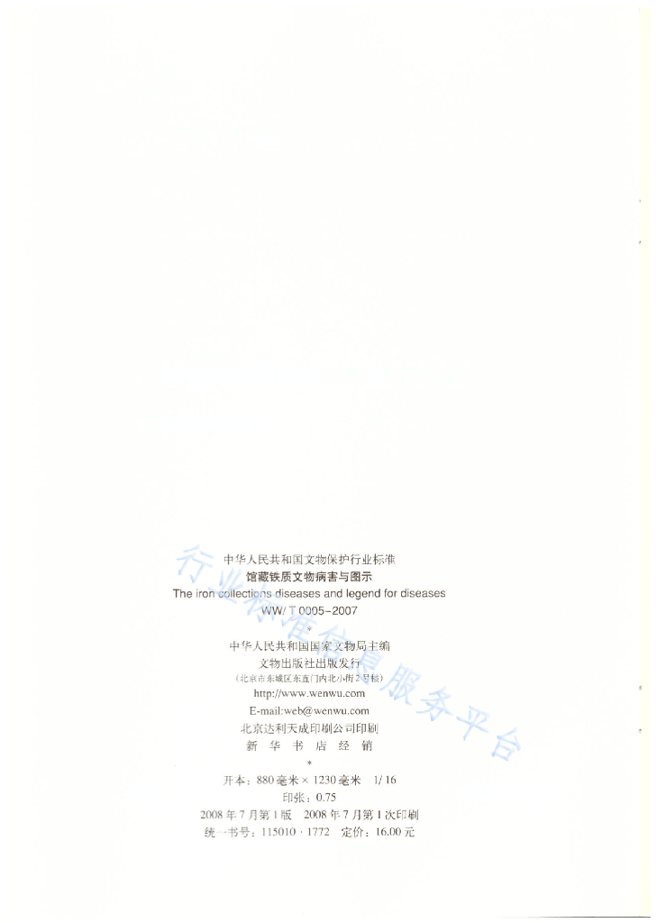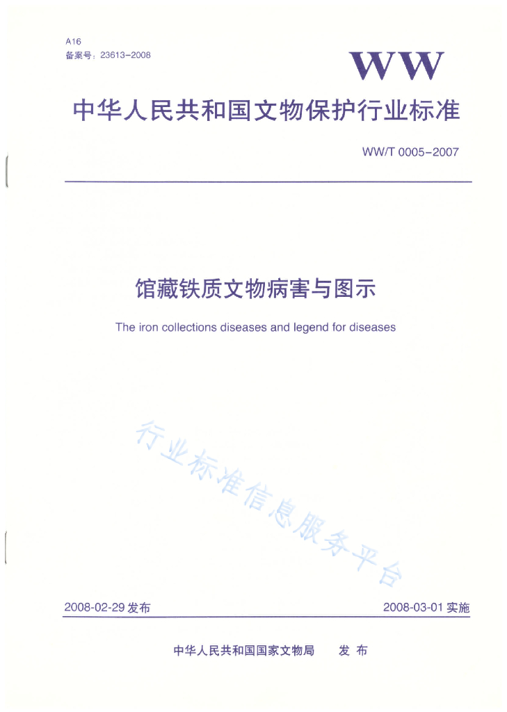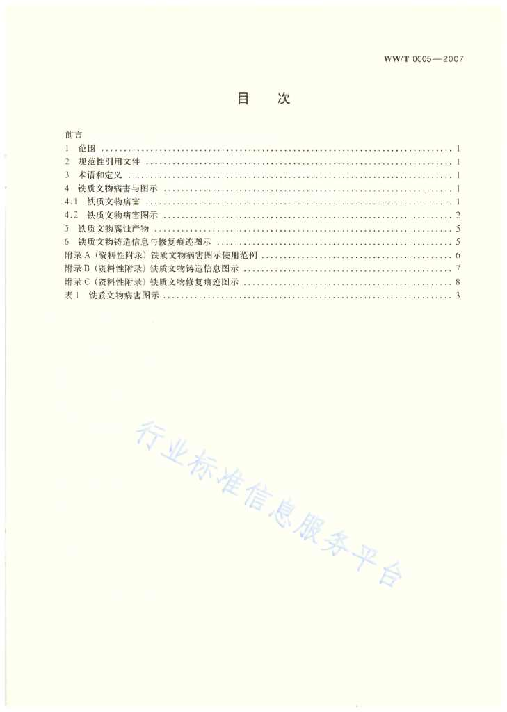 WW/T 0005-2007 馆藏铁质文物病害与图示