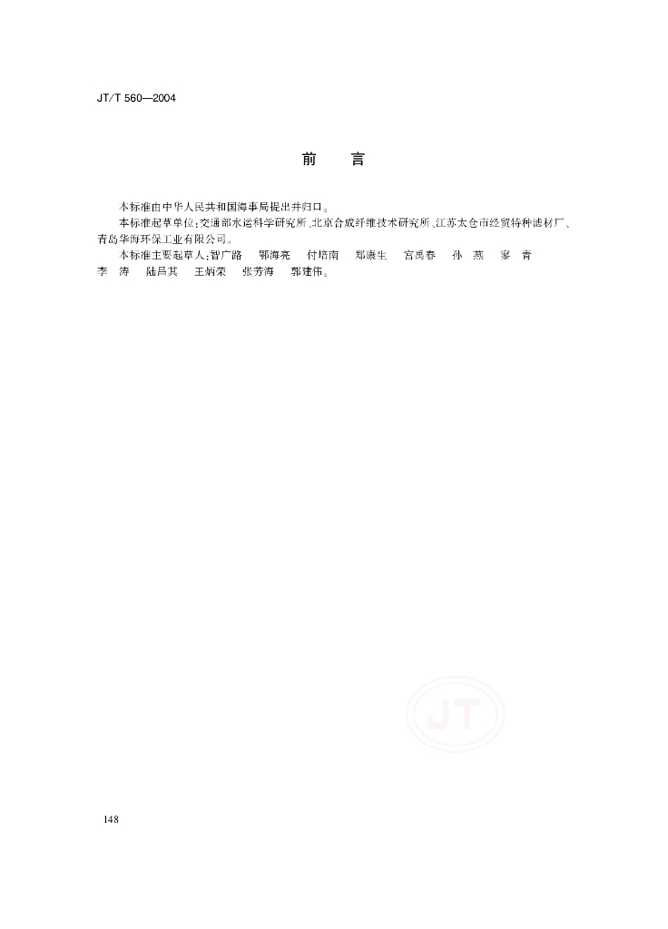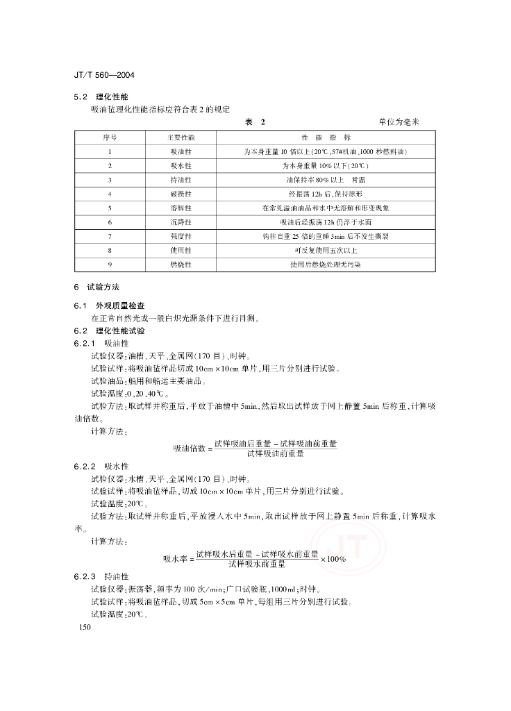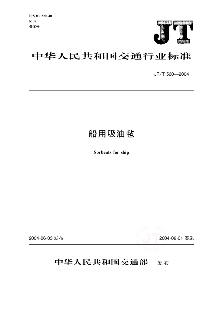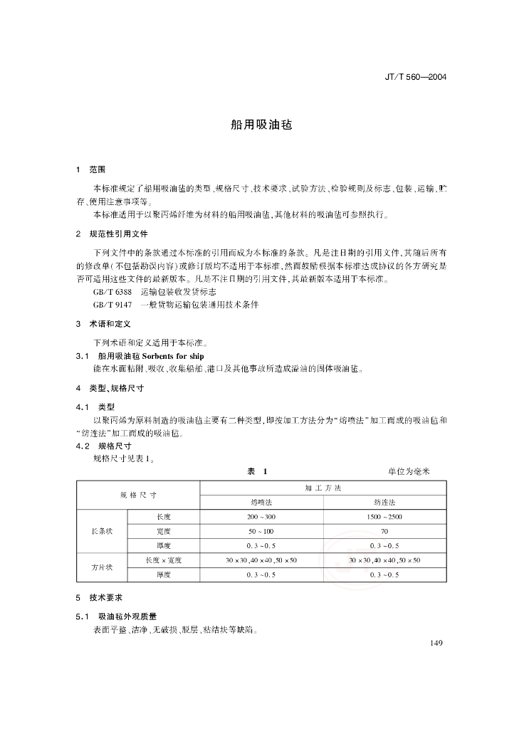 JT/T 560-2004 船用吸油毡