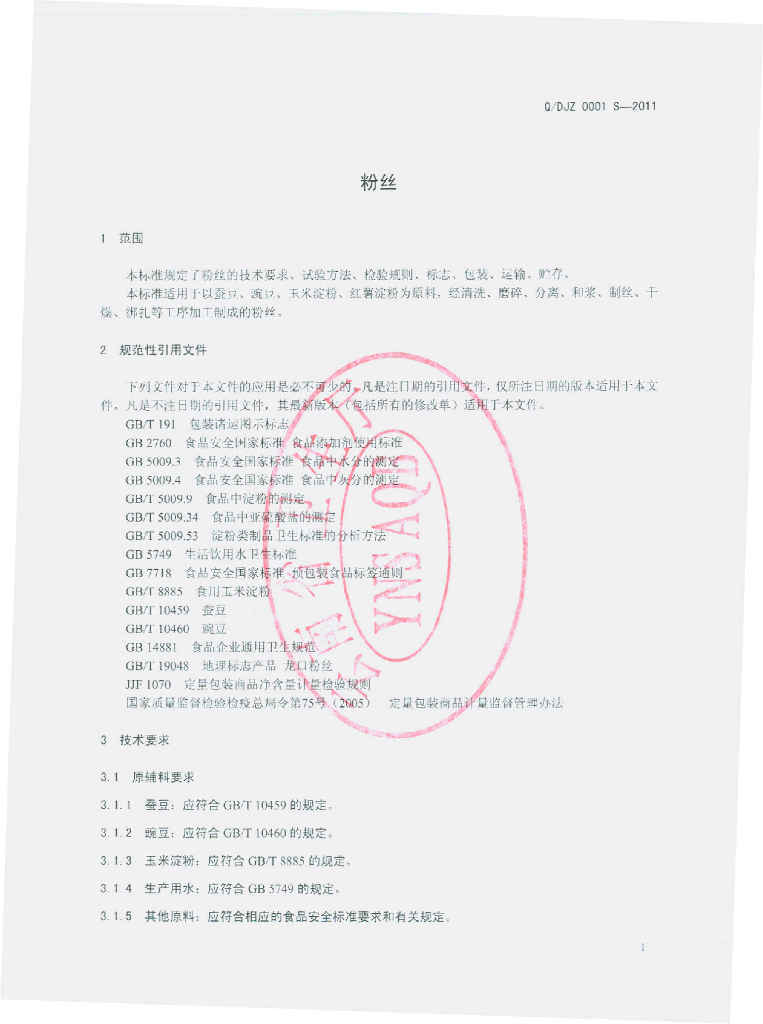 Q/DJZ 0001S-2011 粉丝