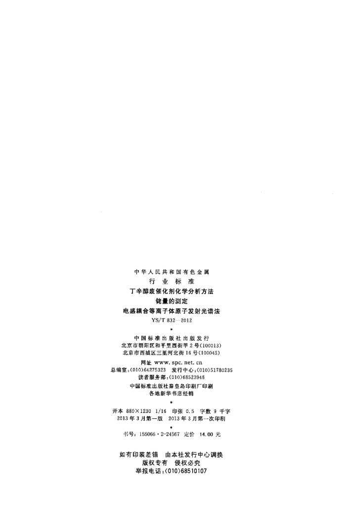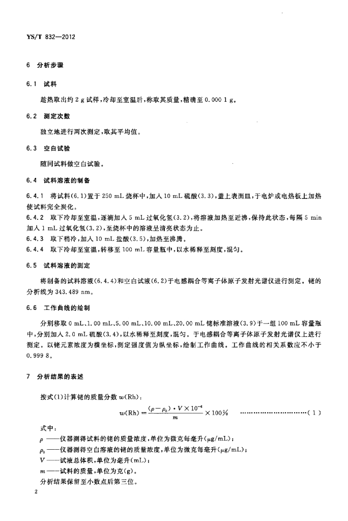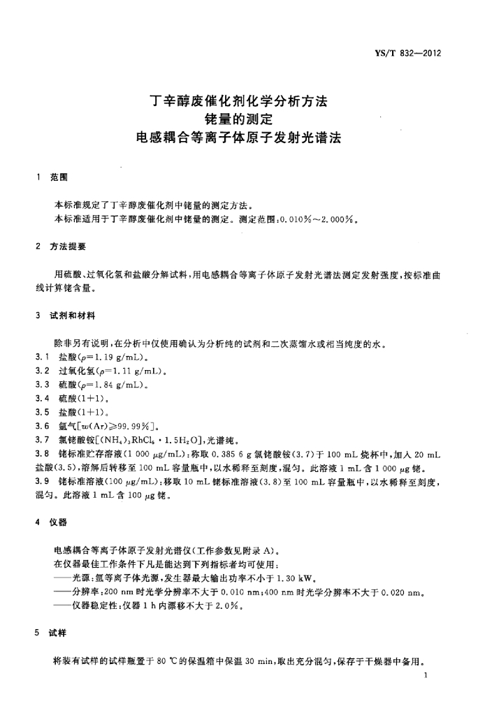 YS/T 832-2012 丁辛醇废催化剂化学分析方法铑量的测定电感耦合等离子体原子发射光谱法