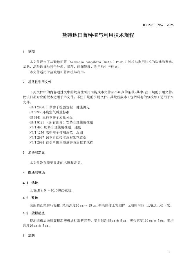 DB23/T 3957-2025 盐碱地田菁种植与利用技术规程