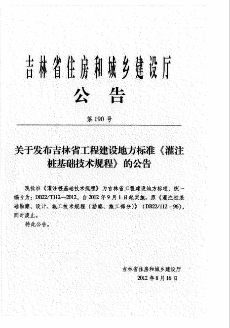 DB22/T 112-2012 吉林省灌注桩基础技术规程(附条文说明)