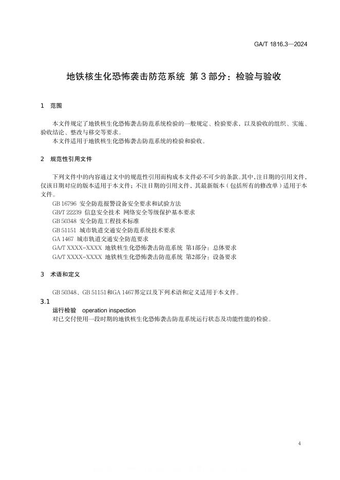GA/T 1816.3-2024 地铁核生化恐怖袭击防范系统 第3部分:检验与验收(摘要版)