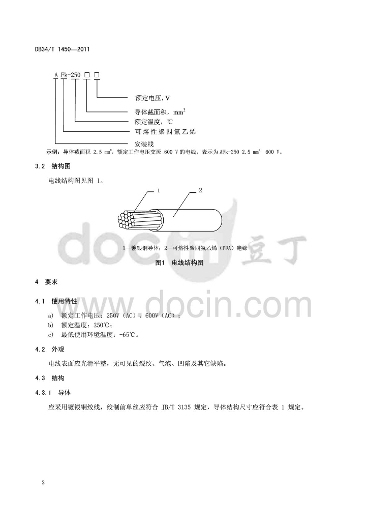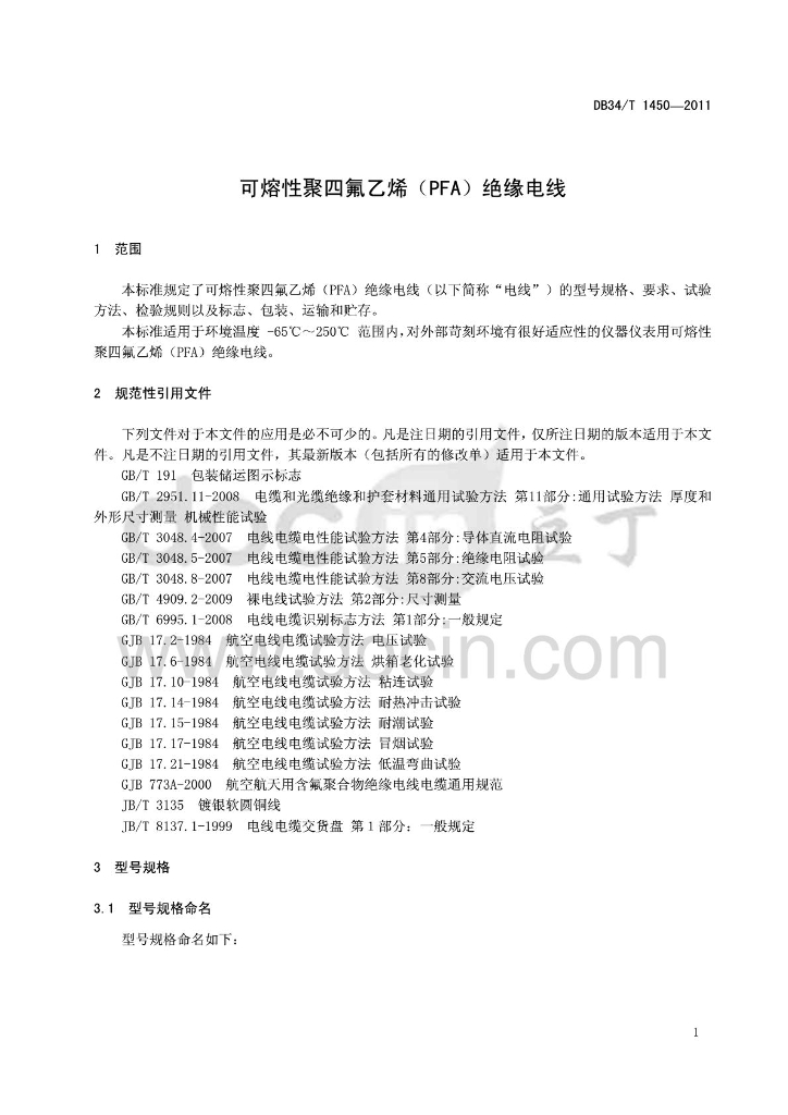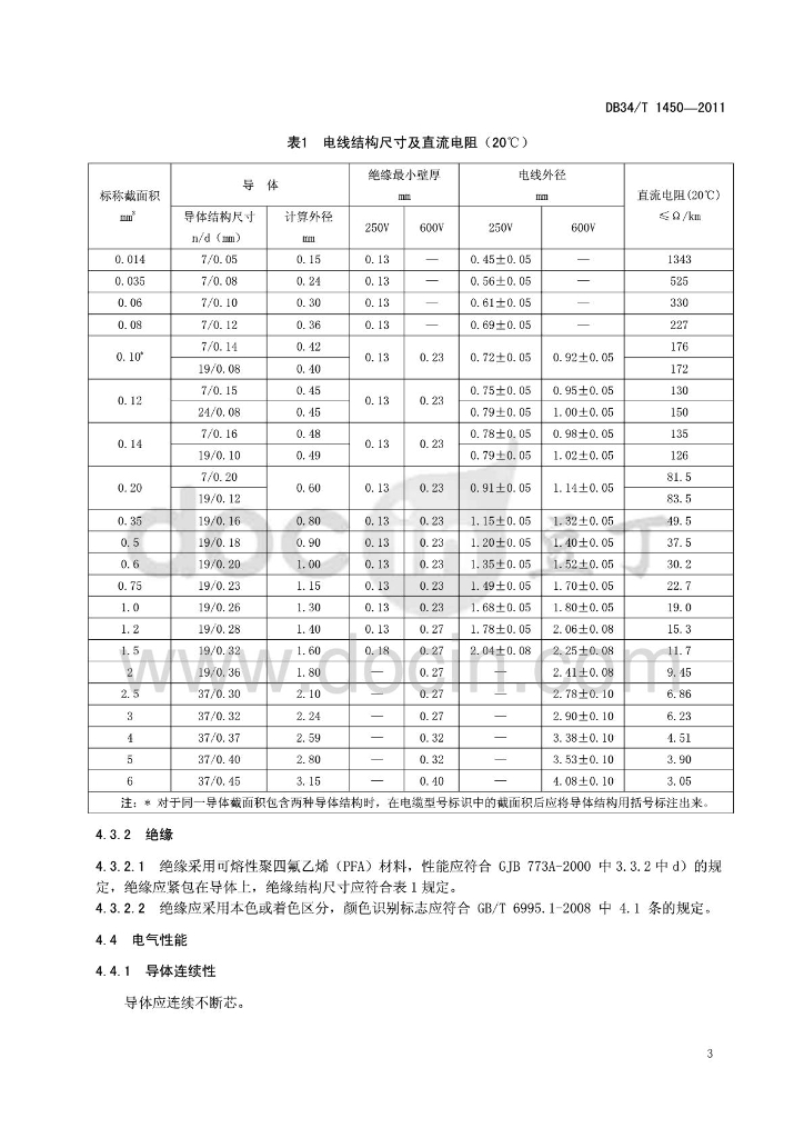 DB34/T 1450-2011 可熔性聚四氟乙烯(PFA)绝缘电线