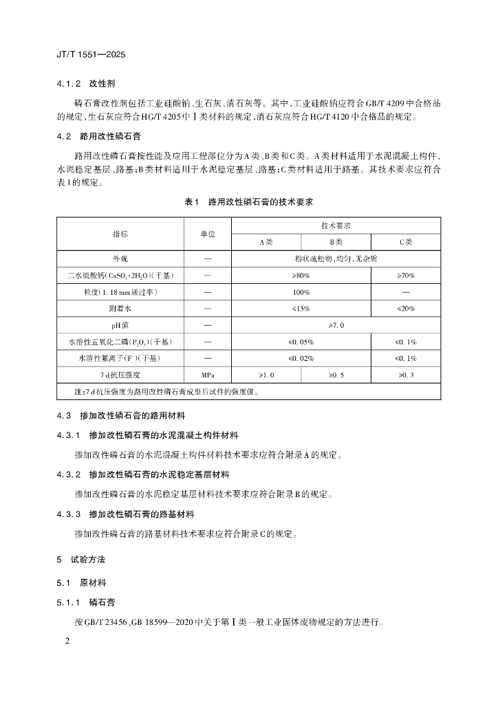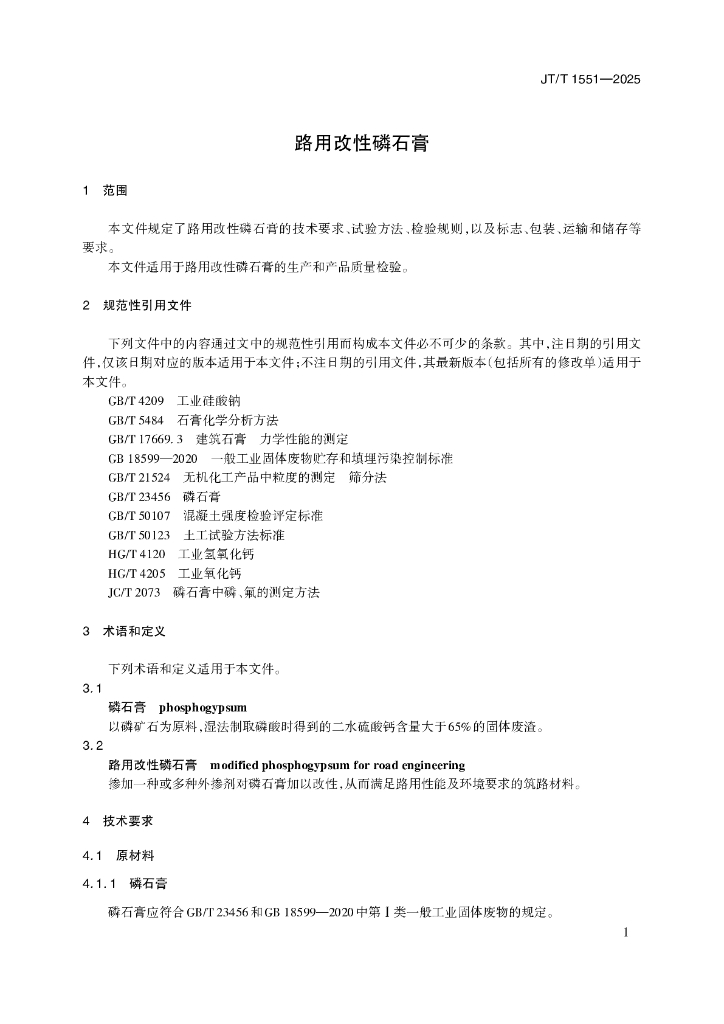 JT/T 1551-2025 路用改性磷石膏