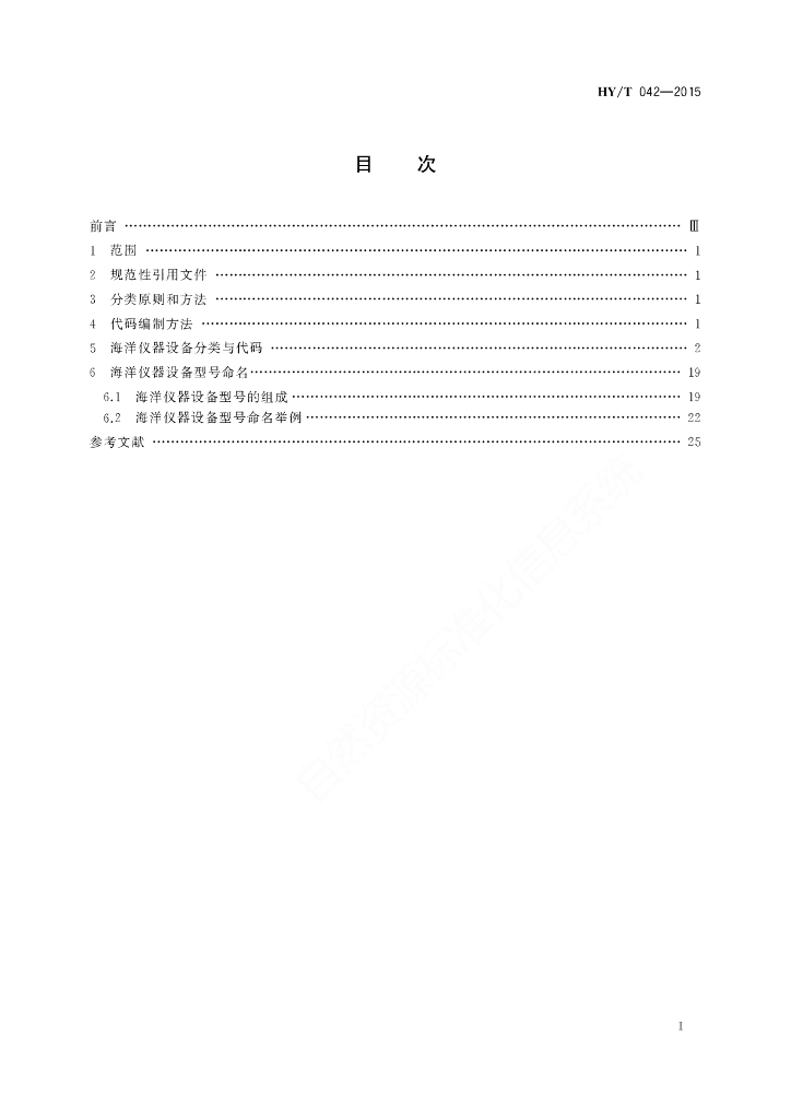 HY/T 042-2015 海洋仪器设备分类、代码与型号命名