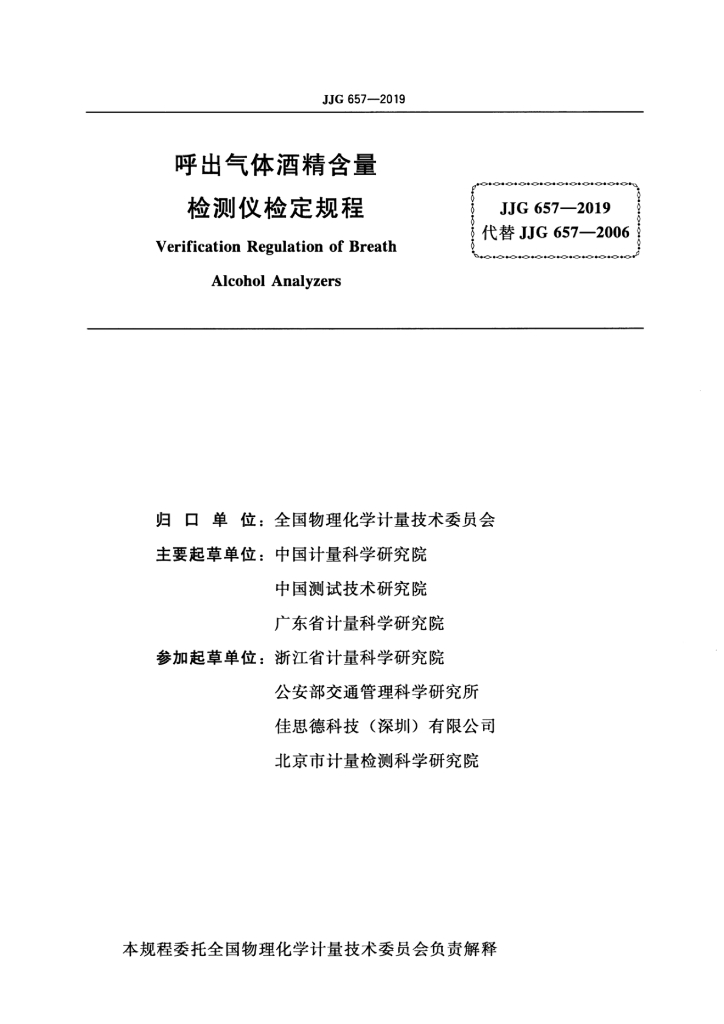 中国计量科学研究院、中国测试技术研究院、广东省计量科学研究院、浙江省计量科学研究院、公安部交通管理科学研究所、佳思德科技(深圳)有限公司、北京市计量检测科学研究院