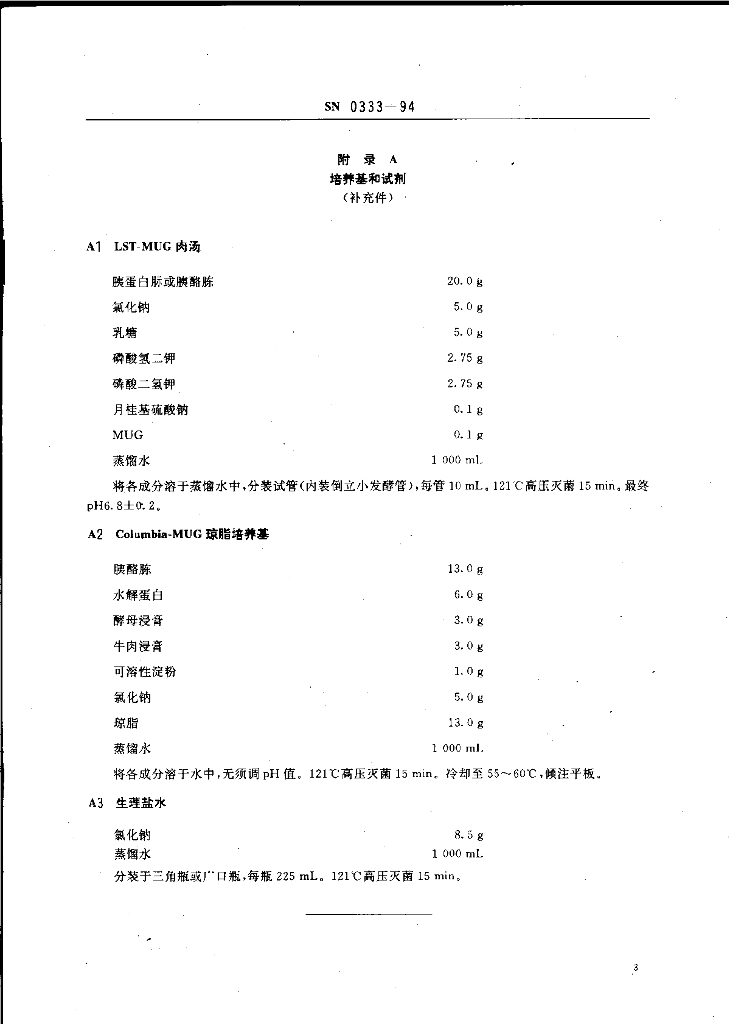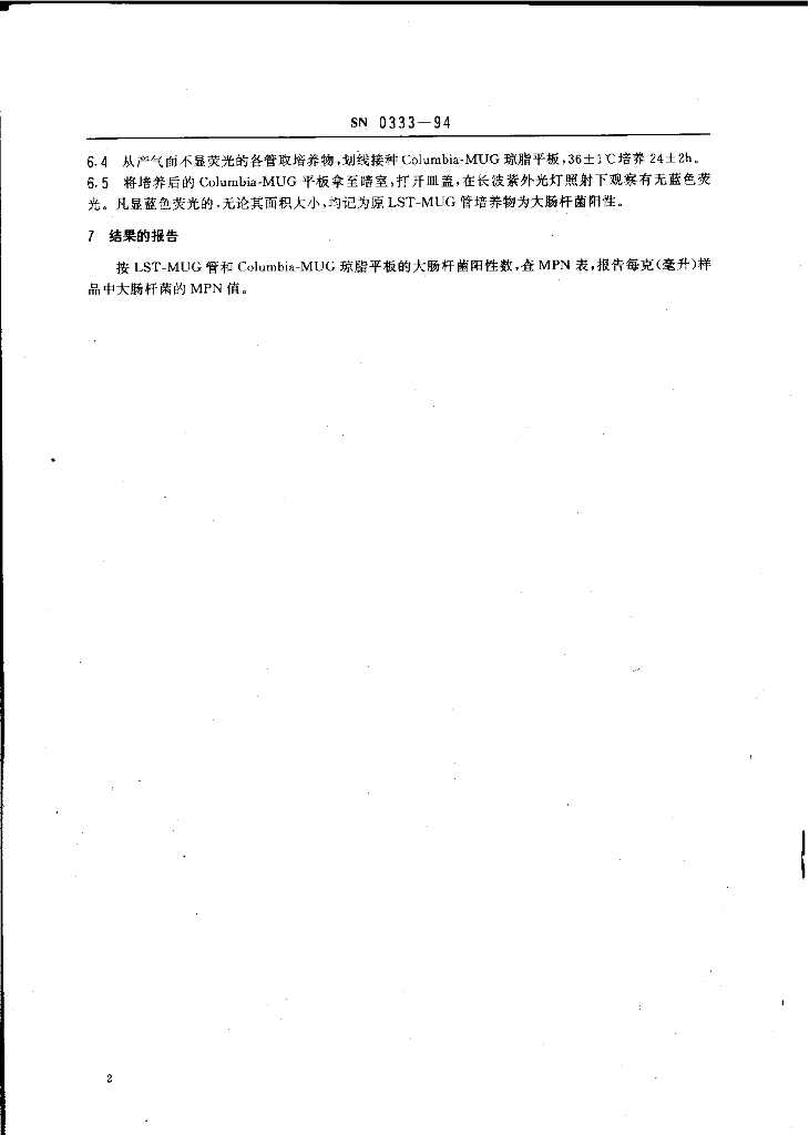 SN 0333-1994 出口食品中大肠杆菌(葡萄糖苷酶荧光)检验方法
