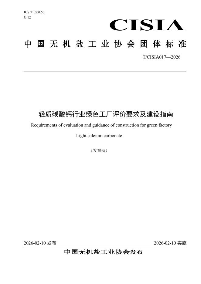 T/CISIA 017-2026 轻质碳酸钙行业绿色工厂评价要求及建设指南