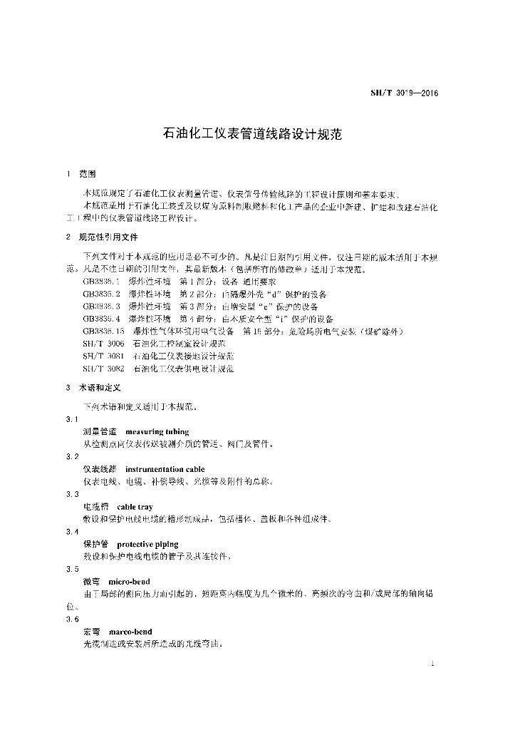 SH/T 3019-2016 石油化工仪表管道线路设计规范