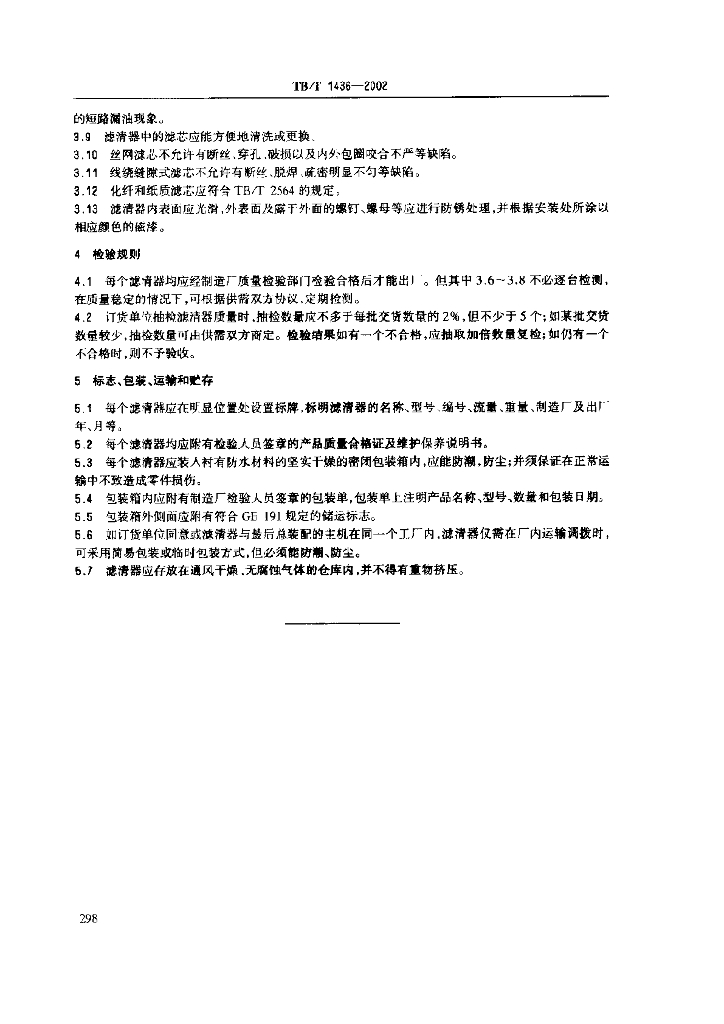 TB/T 1436-2002 内燃机车机油滤清器技术条件