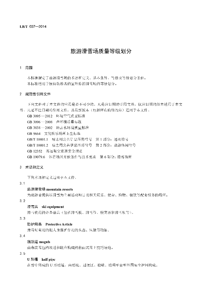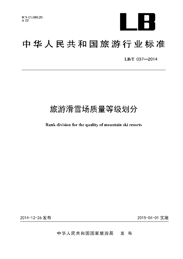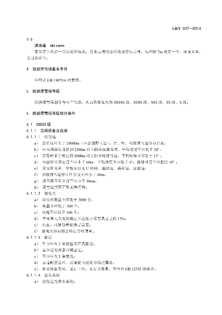 LB/T 037-2014 旅游滑雪场质量等级划分
