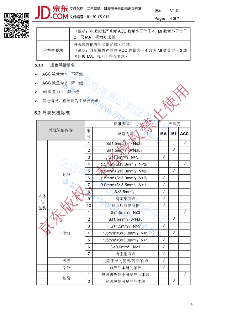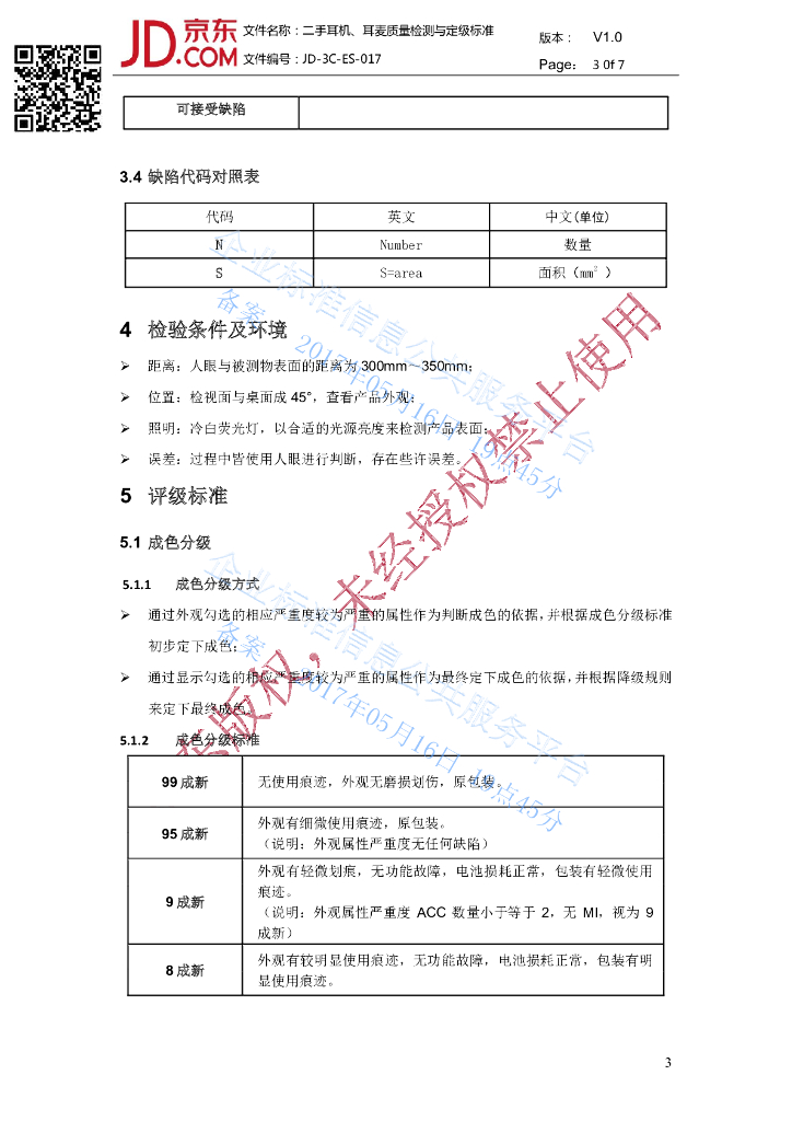 Q/DX3CES 017-2017 京东二手耳机耳麦检验标准