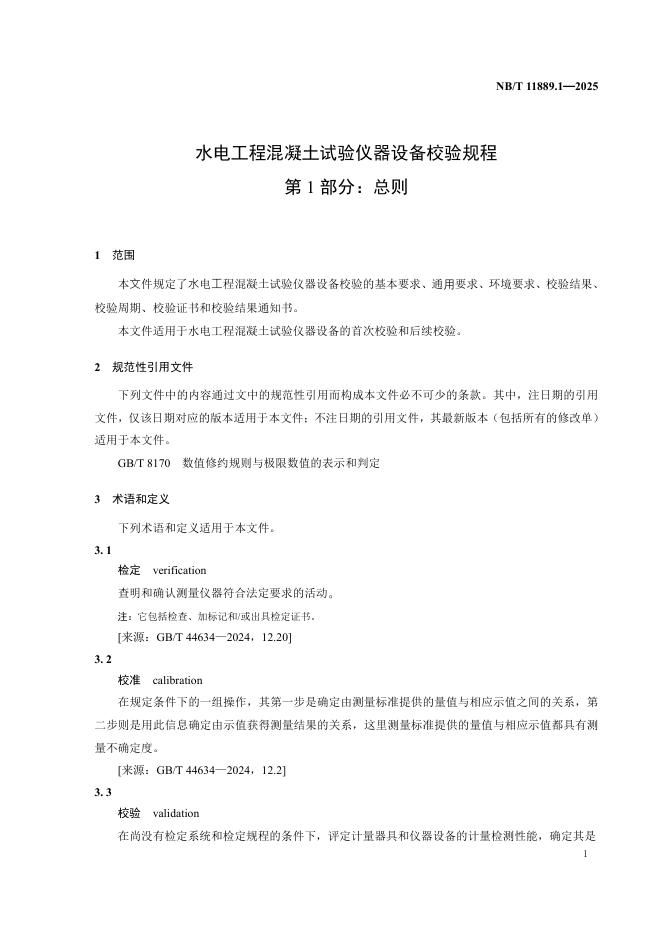 NB/T 11889.1-2025 水电工程混凝土试验仪器设备校验规程 第1部分:总则