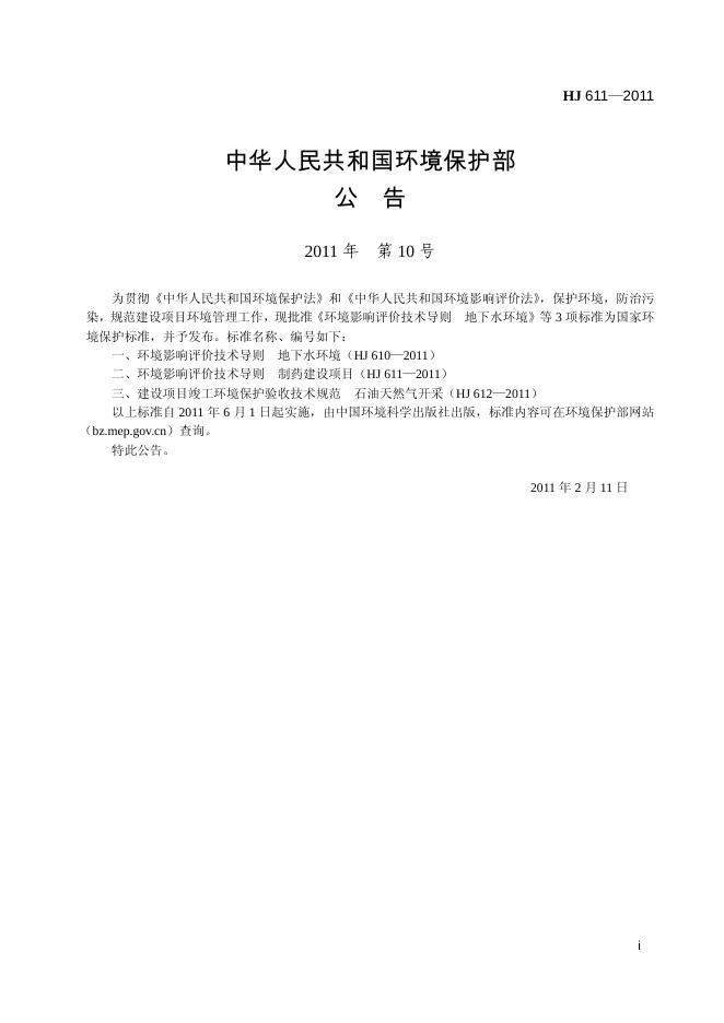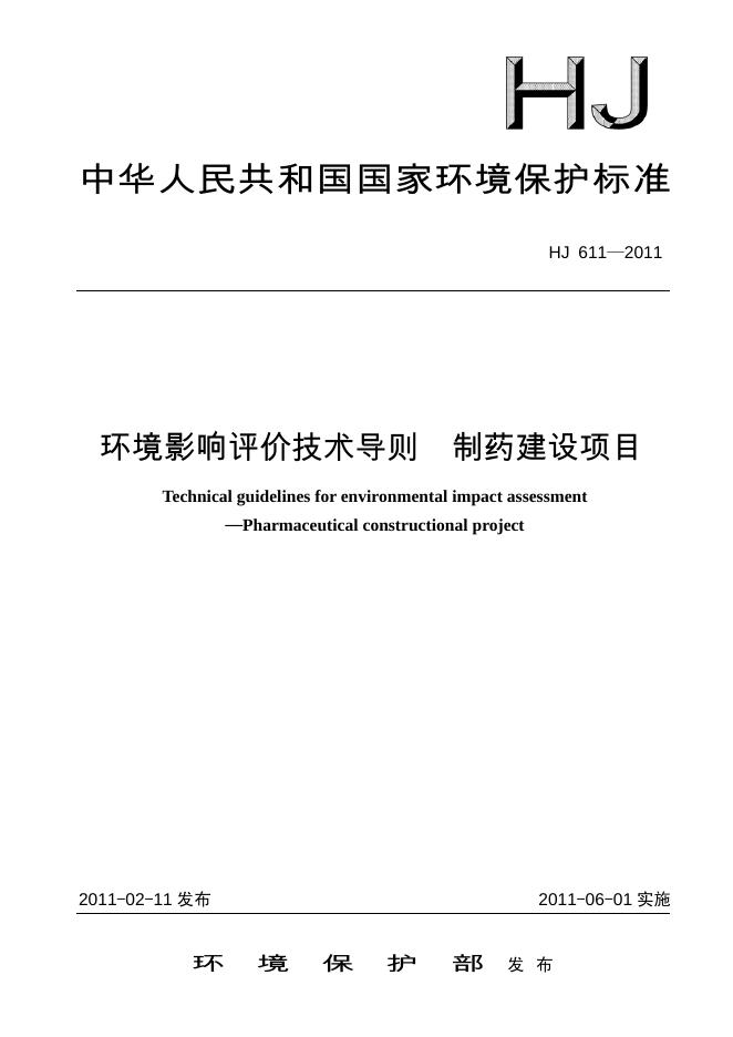 HJ 611-2011 环境影响评价技术导则 制药建设项目