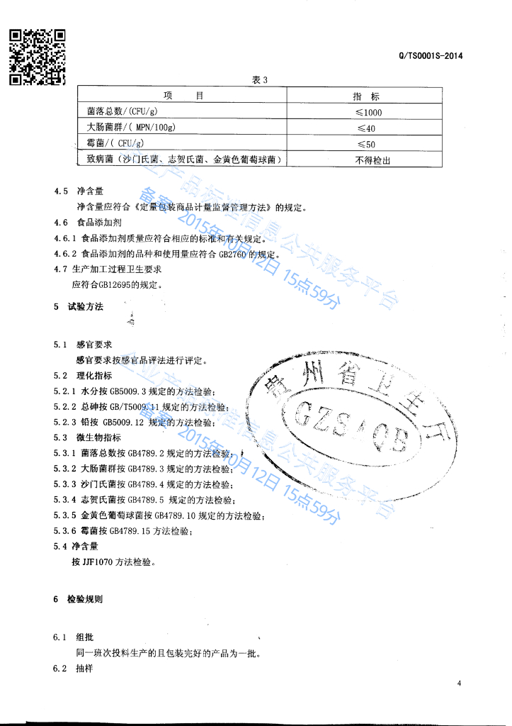 Q/TS 0001S-2014 贵州特色制药有限责任公司 姜茶(固体饮料)