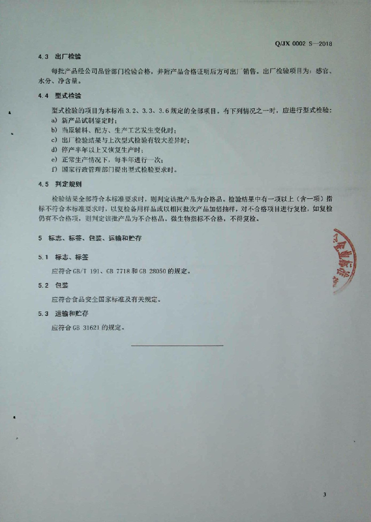Q/JX 0002S-2018 淀粉糖制品
